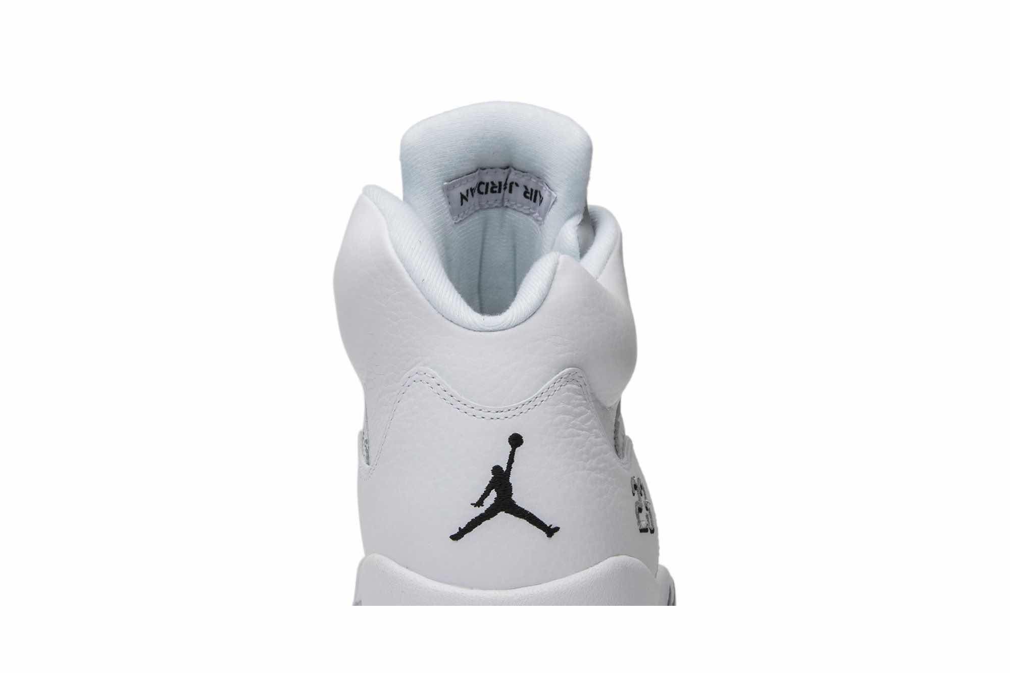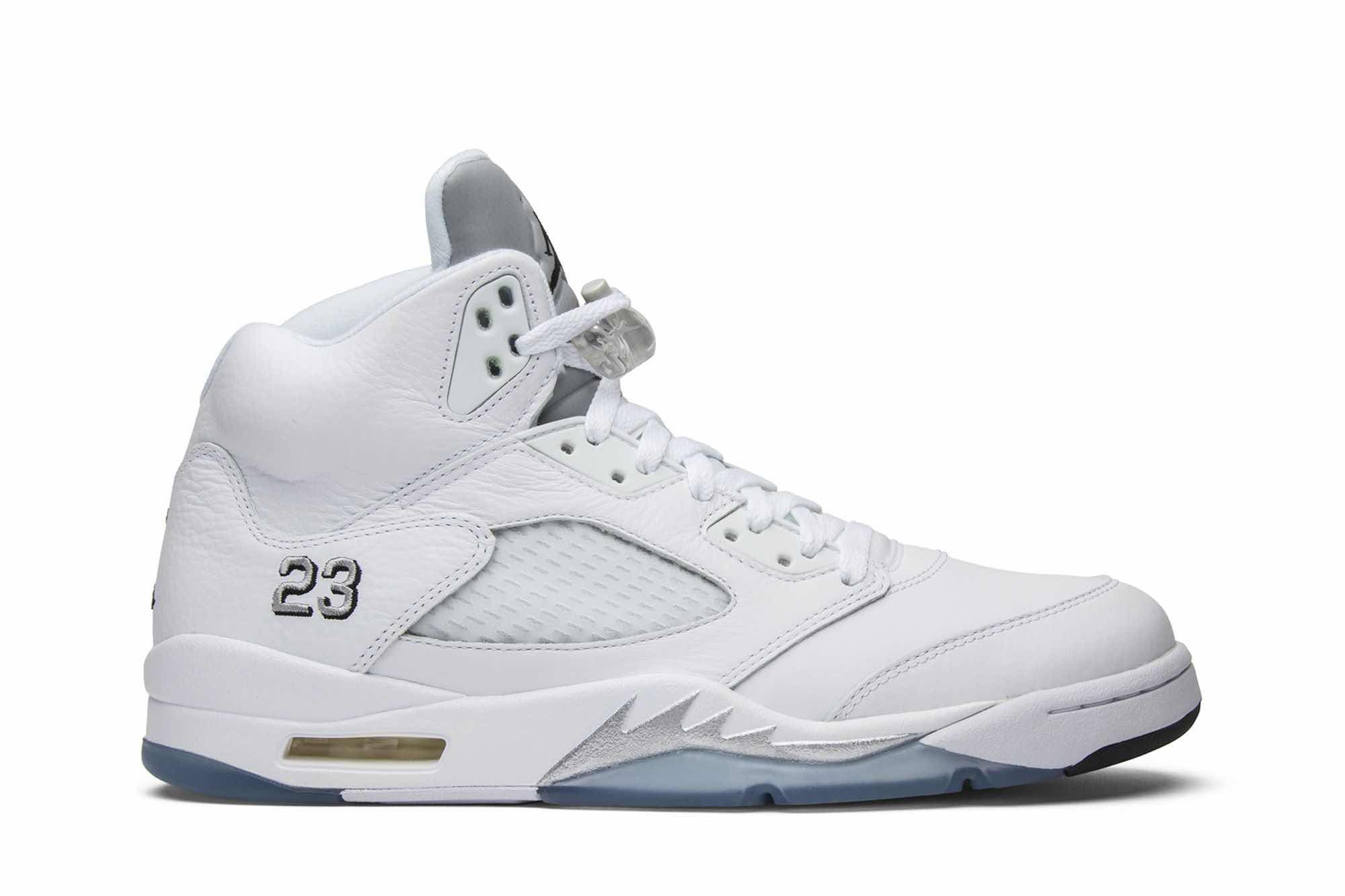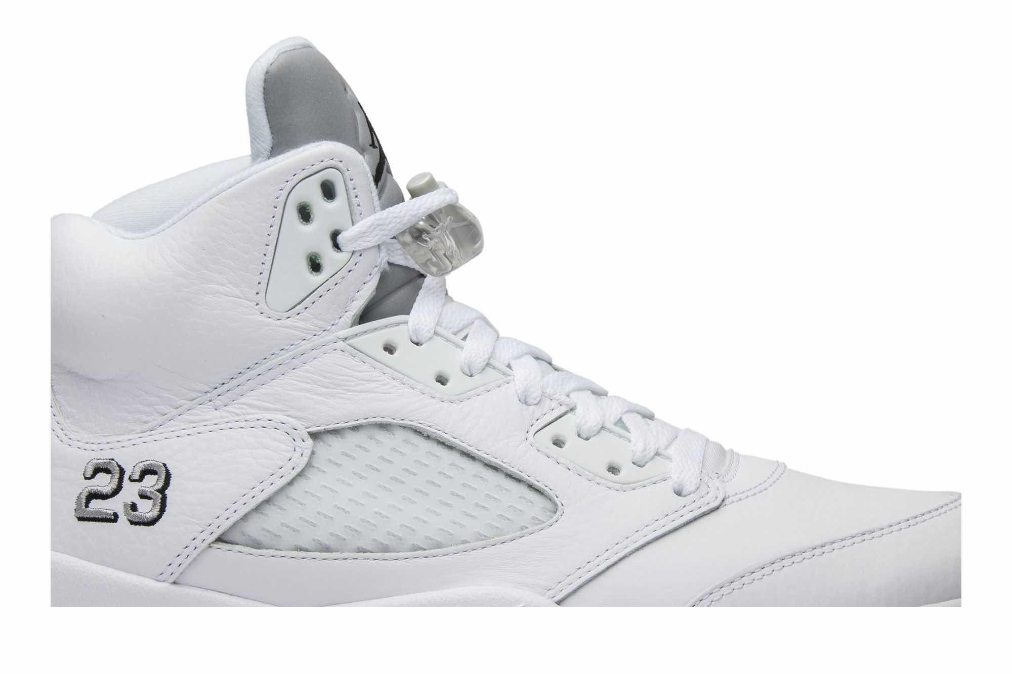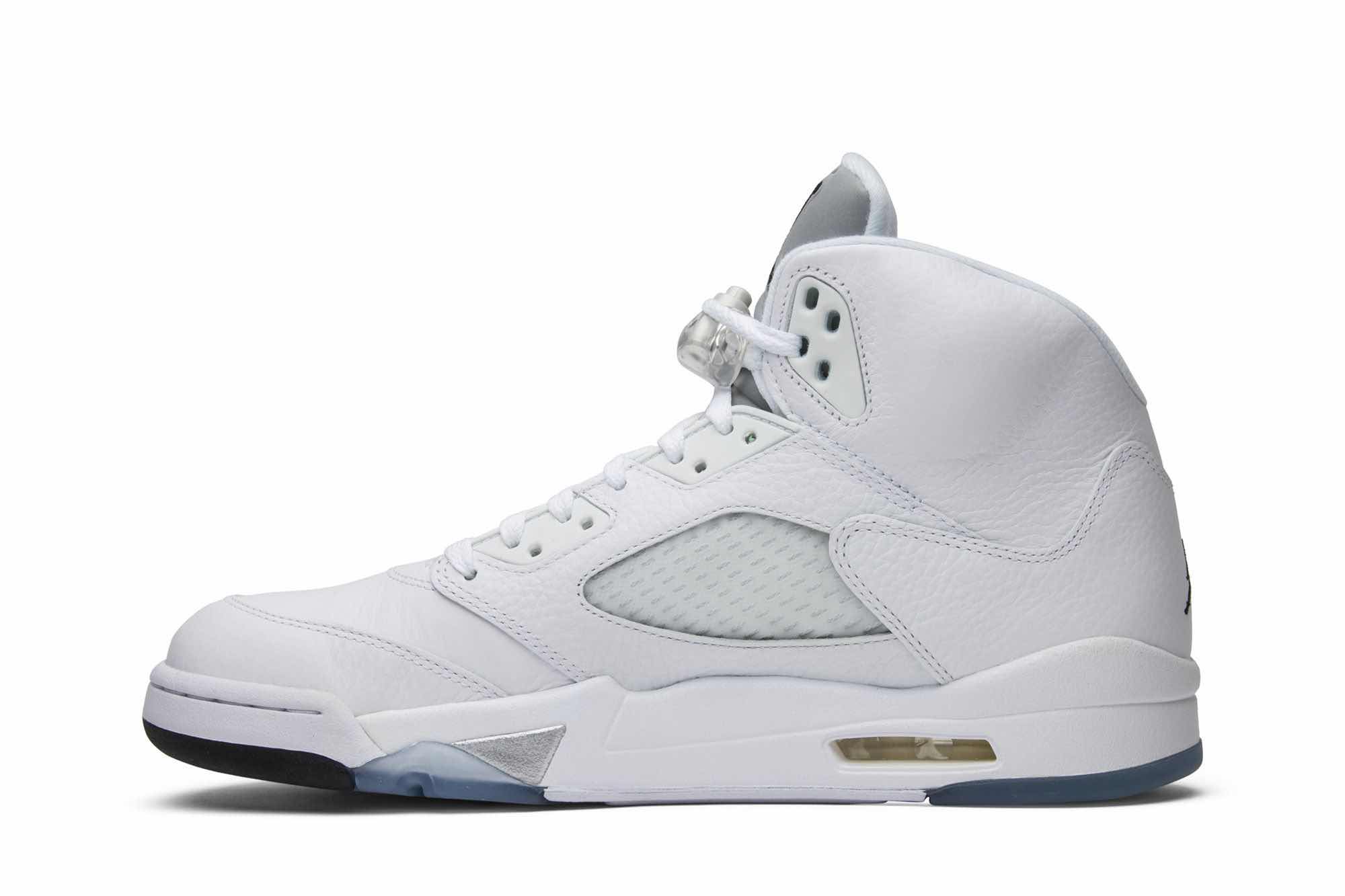 The Air Jordan 5 Retro ‘Metallic White’ 2015 is a remastered version of the classic colorway first released in 2000. The sneaker features a white tumbled leather upper with metallic silver and black accents on an ice blue translucent outsole. This retro release is sure to please fans of the Air Jordan 5, and is a must-have for any collector. With its clean and simple design, the Air Jordan 5 Retro ‘Metallic White’ 2015 is a versatile sneaker that can be worn with any outfit. Whether you’re hitting the court or just hitting the streets, the Air Jordan 5 Retro ‘Metallic White’ 2015 is a great choice.