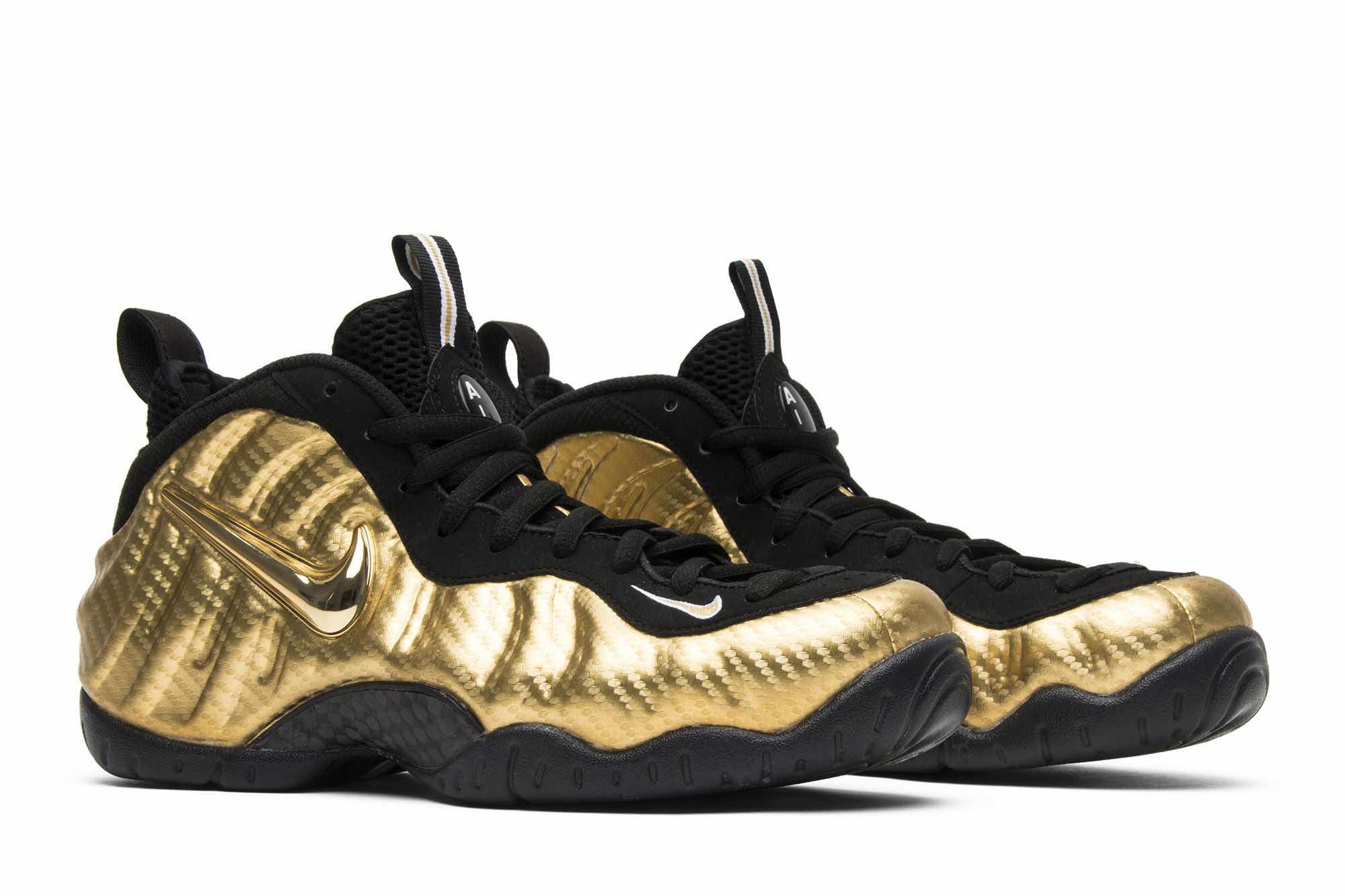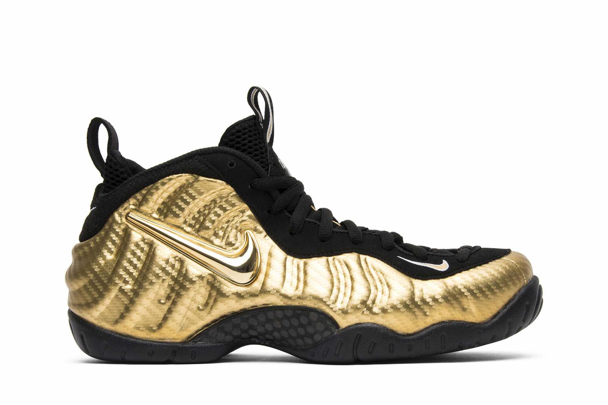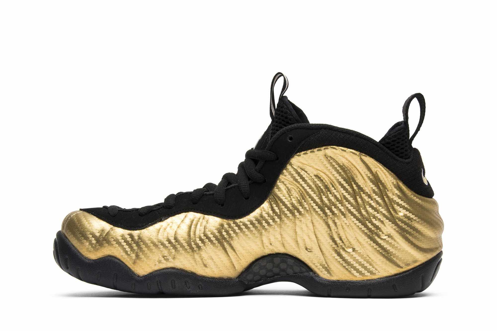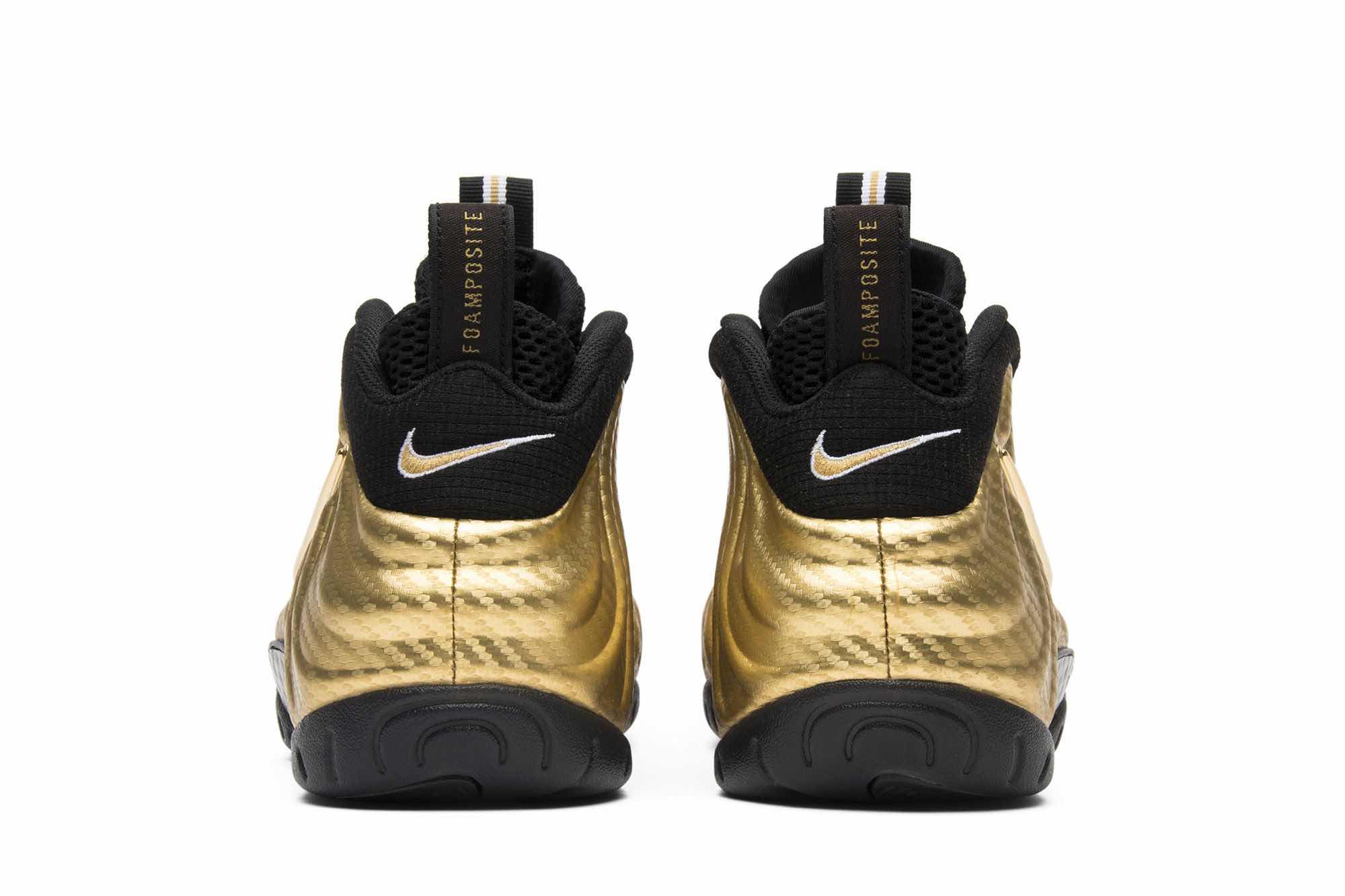 The Nike Air Foamposite Pro ‘Metallic Gold’ sneaker pairs the bold iconic design of the futuristic silhouette with an even bolder metallic gold finish. Originally released in 1997, the Foamposite’s revolutionary design was showcased as a blend of science and performance, with its aerodynamic-inspired design, and construction created by pouring synthetic liquid into a mold. The ‘Metallic Gold’ iteration balances its luxe gold upper with clean matte black accents to finish the look.