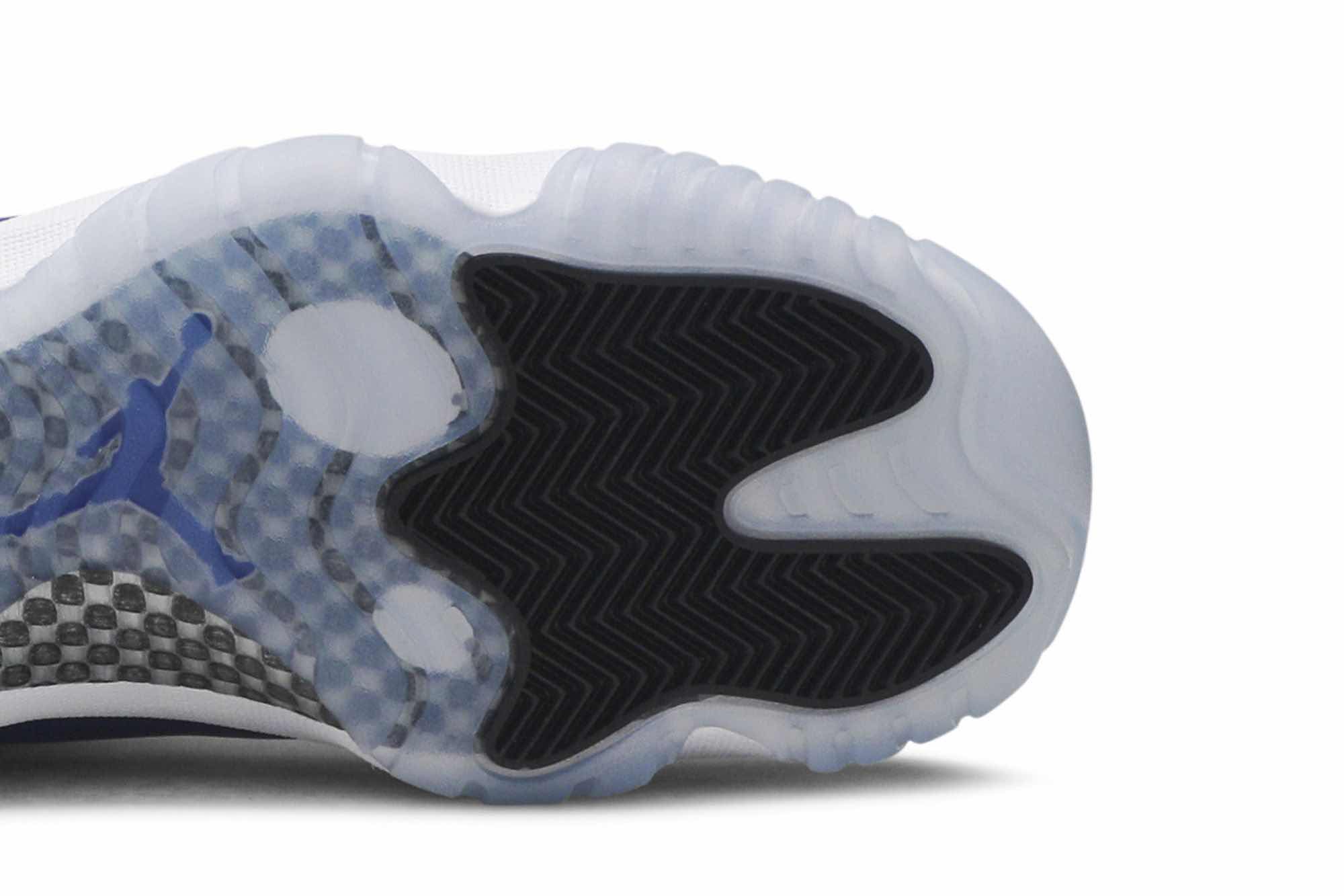 Designed by Tinker Hatfield, the women’s Air Jordan 11 Retro Low “Concord Sketch” delivers luxury and chicness. It features a glossy patent leather overlay and an icy translucent outsole.