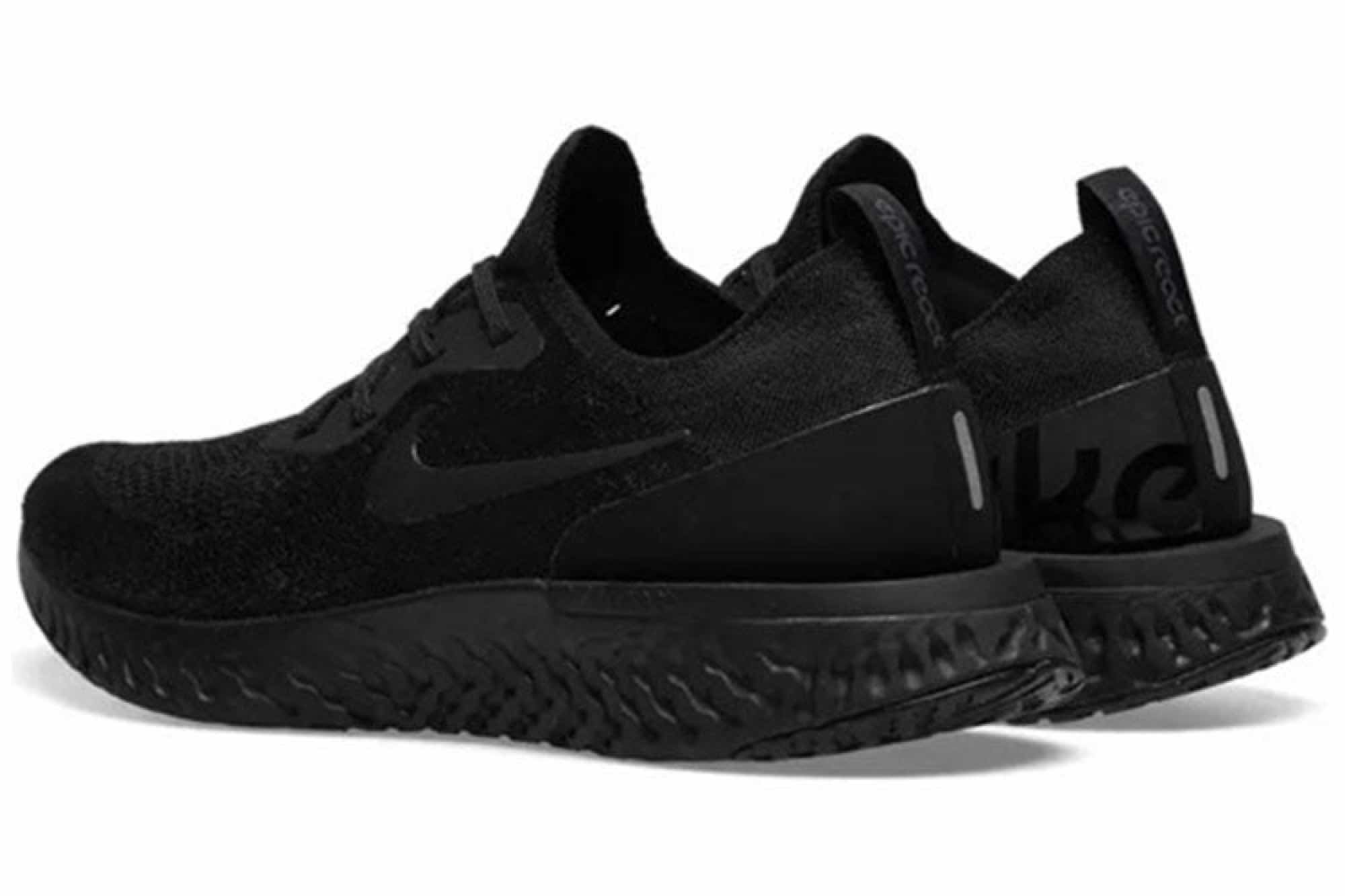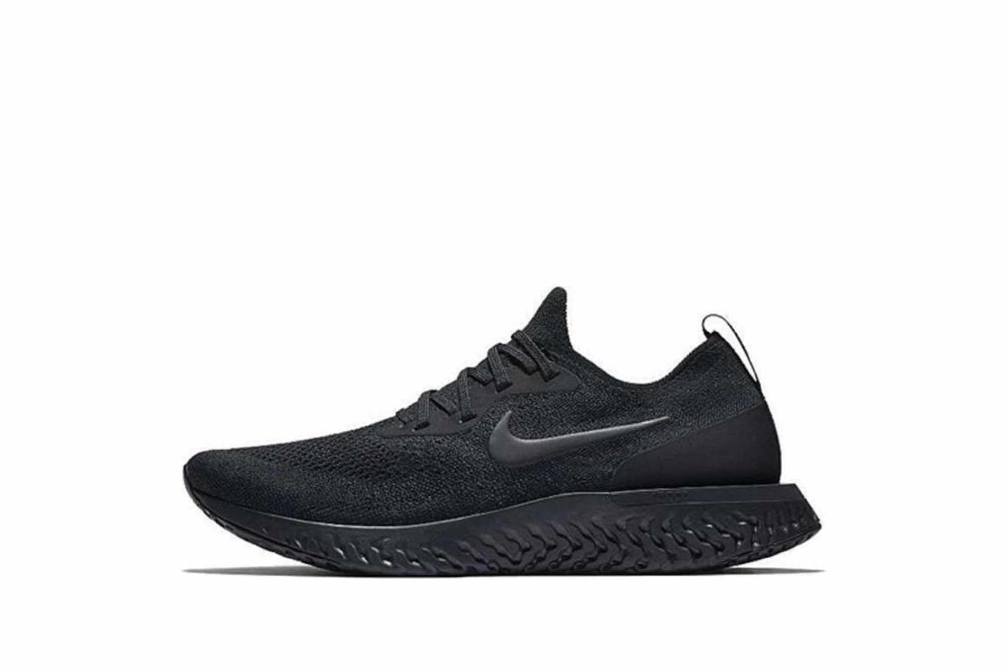 The Nike Epic React Flyknit ‘Triple Black’ sneaker offers a dark take on the brand’s sleek running silhouette. This version stands out with a look that’s been steeped in black from toe to heel, with a matching black liner, heel counter, Swoosh, midsole and outsole. Made with Nike React technology, the midsole is comprised of a single piece that simultaneously provides cushioning and reactive spring, capped by a rubber forefoot that helps maintain durability.