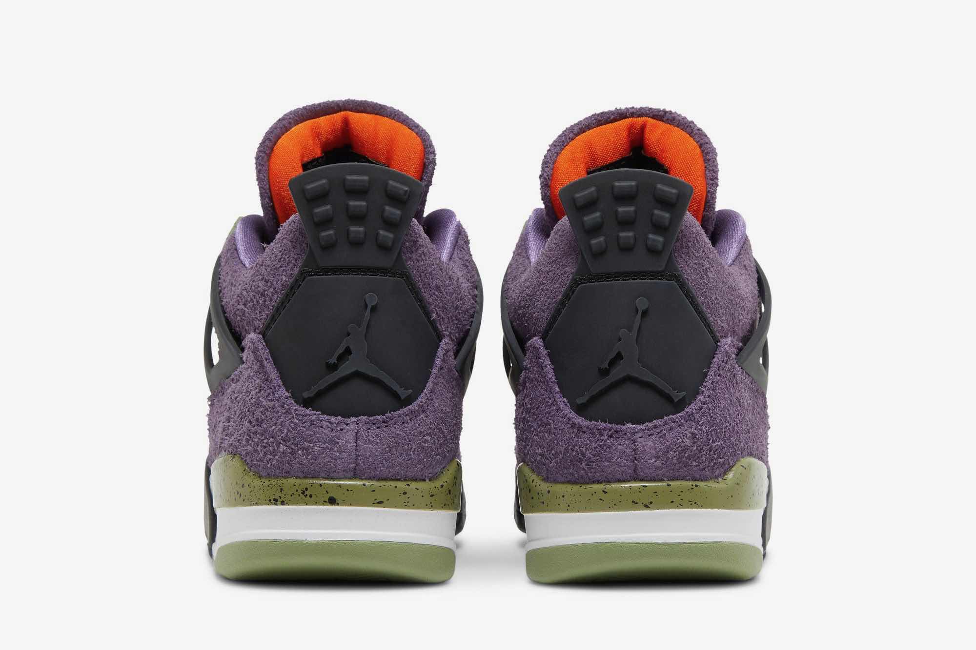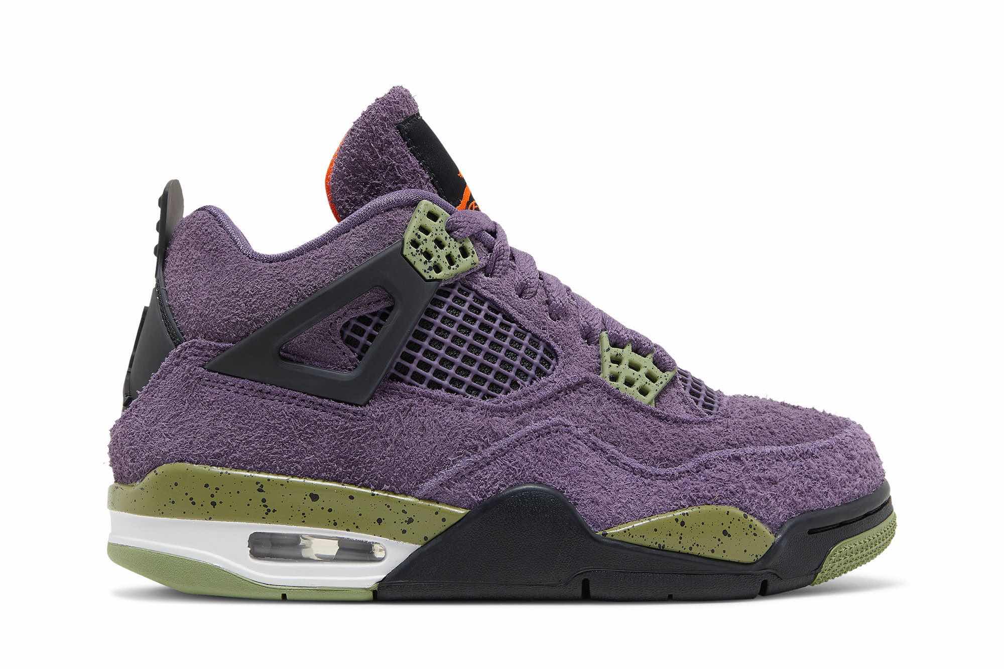Step up your swag game with the Air Jordan 4 Retro Womens Canyon Purple. Brought to life by Tinker Hatfield’s innovative design, this shoe has a vibrant and eye-catching twist on the traditional build. Crafted from shaggy suede in a bright purple finish and intricate lime green accents and details, you will stand out wherever you go wearing these attention-grabbing shoes that are sure to make a statement. The signature Jumpman logo graces the woven tongue tag complete with Safety Orange contrast detailing for an extra touch of flair. With black molded wings, Jumpman-embossed heel tab and herringbone-traction rubber outsole, the Air Jordan 4 Womens Canyon Purple is a perfect combination of professional style and comfort. Pick up your pair today!