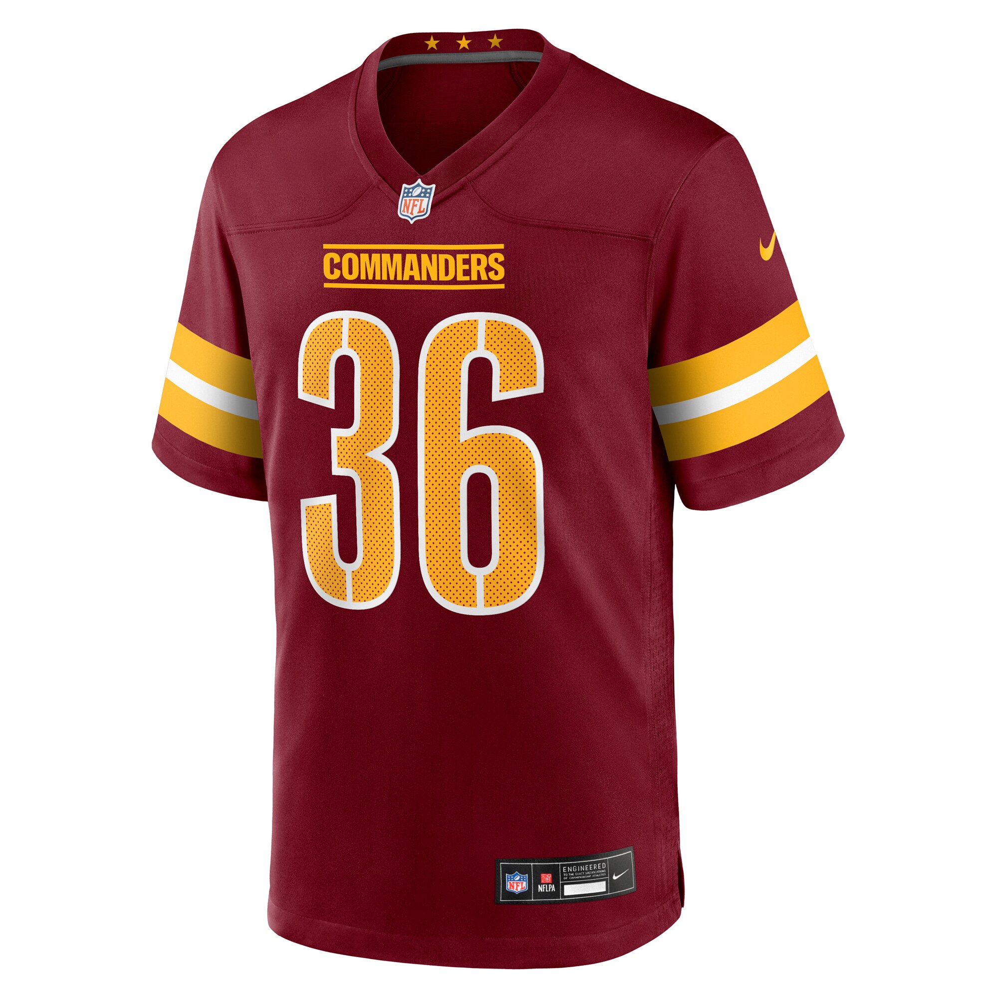 This Chris Rodriguez Jr. Nike Game Jersey is an essential piece of gear for any Washington Commanders fan looking to highlight their favorite player. The heat-sealed name, number and team details provide a kickoff-ready look that elevates your excitement for game day. Made with comfort in mind, this Washington Commanders Team replica jersey delivers a standard, lightweight fit and features breathable mesh side panels for added ventilation.