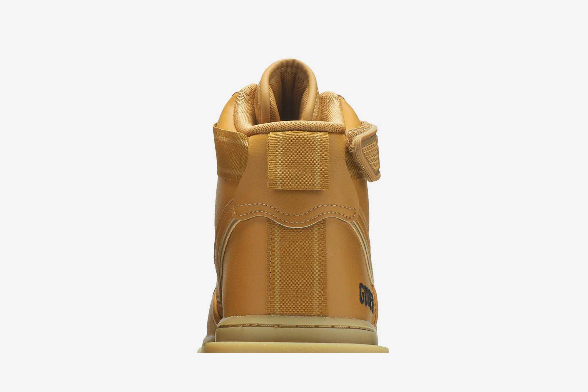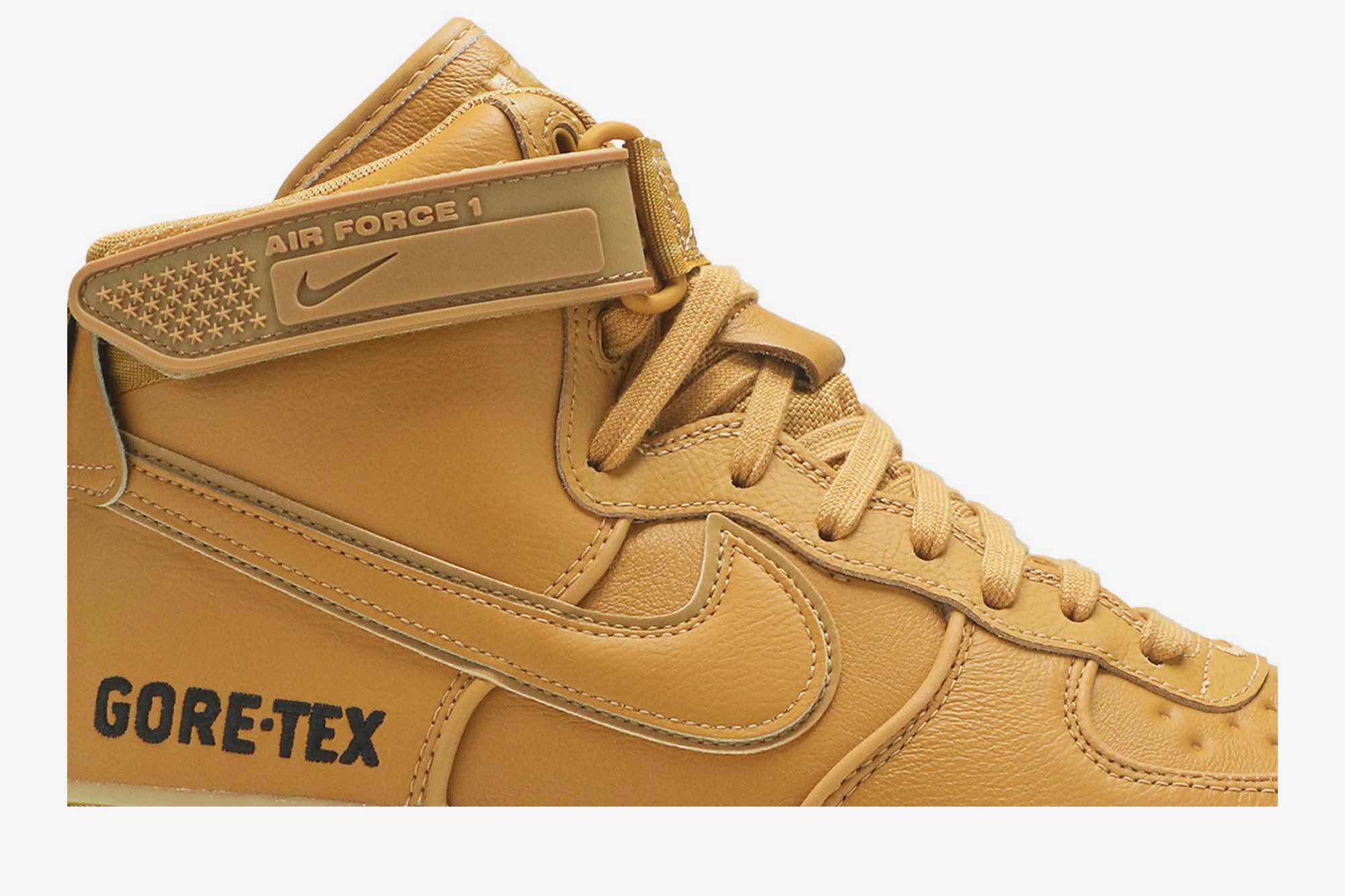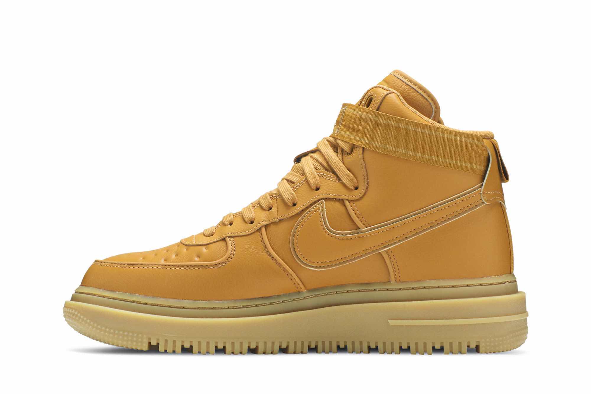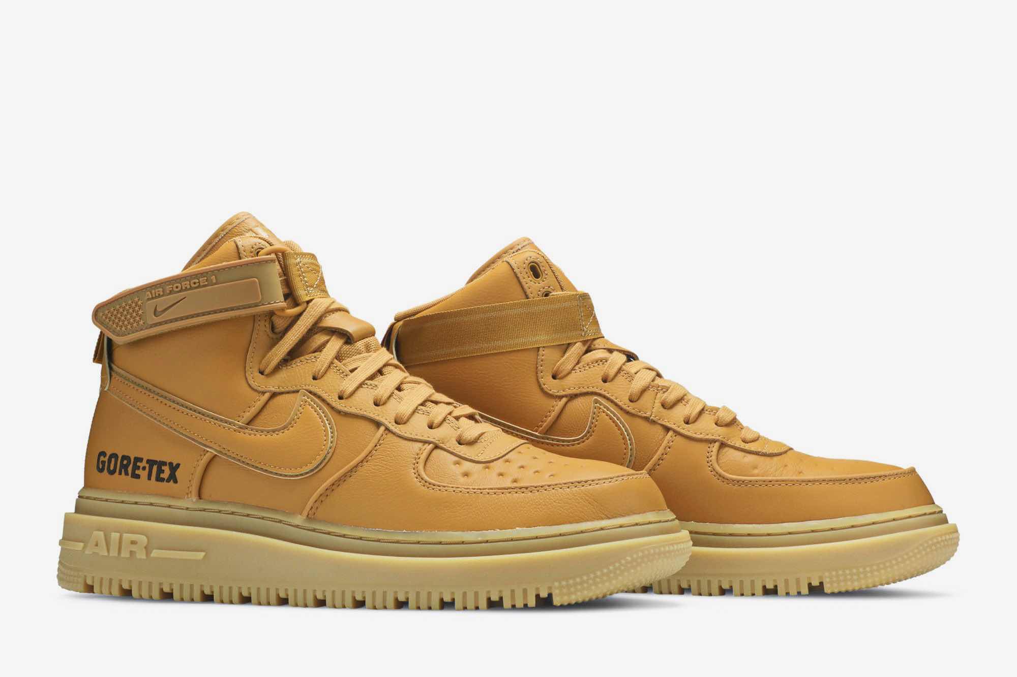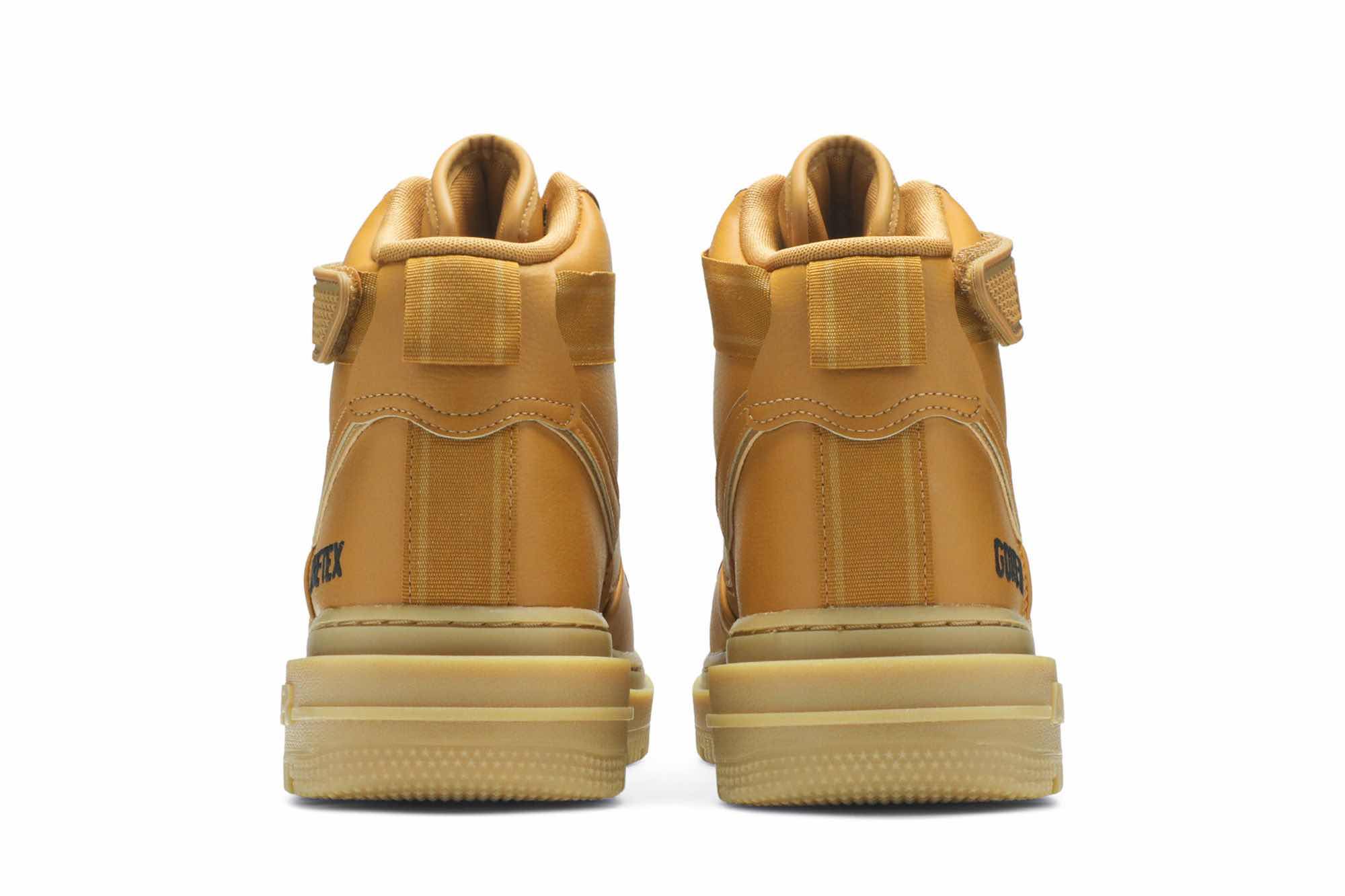 The Nike Air Force 1 Gore-Tex Boot ‘Wheat’ applies a monochrome finish to a rugged build made to withstand harsh weather conditions. Thick laces and a removable silicone ankle strap secure the leather upper, reinforced with a Gore-Tex lining for waterproof protection. Underfoot, the gum rubber sole unit utilizes outdoor lugs for grippy traction. ‘Gore-Tex’ is embroidered on the lateral heel as a nod to the sneaker’s upgraded construction.