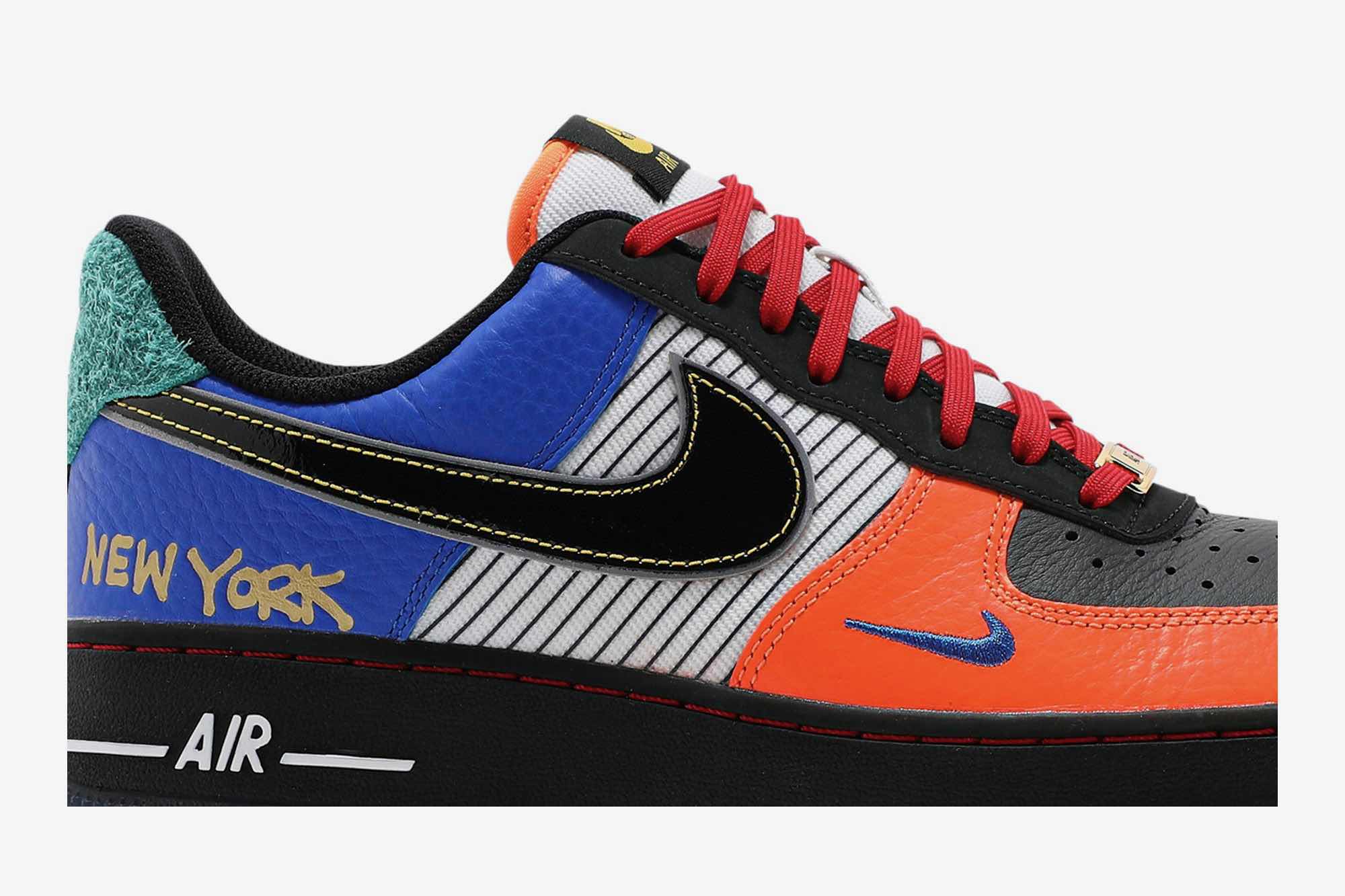 Paying tribute to one of the cities that made the shoe a classic, the Air Force 1 Low ’07 ‘What The NYC’ was released October 2019 with a multi-color motif calling out iconic New York sports teams. A mixture of materials and colors make up the upper, while a NEW YORK graffiti graphic adorns the side as well as the insole.