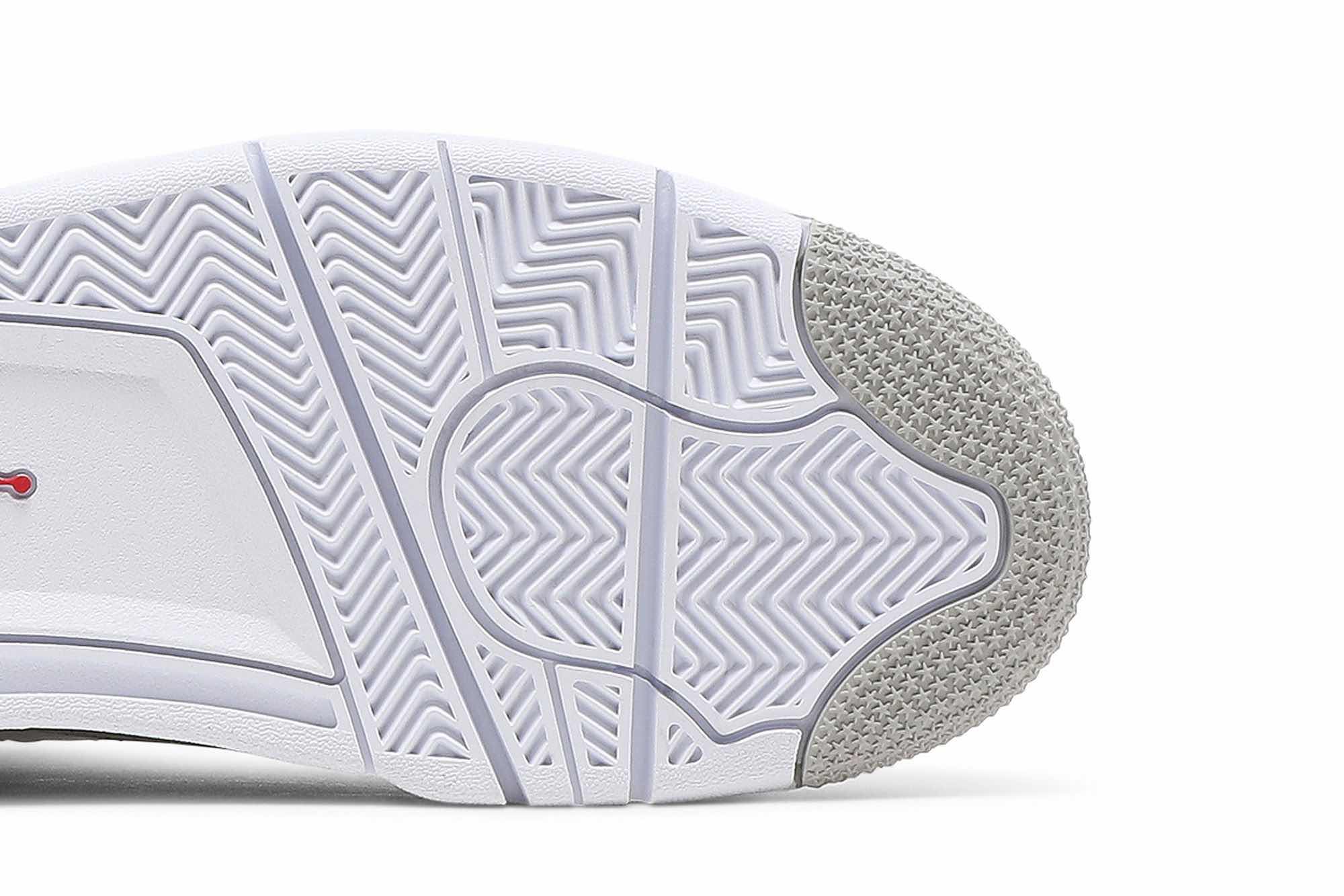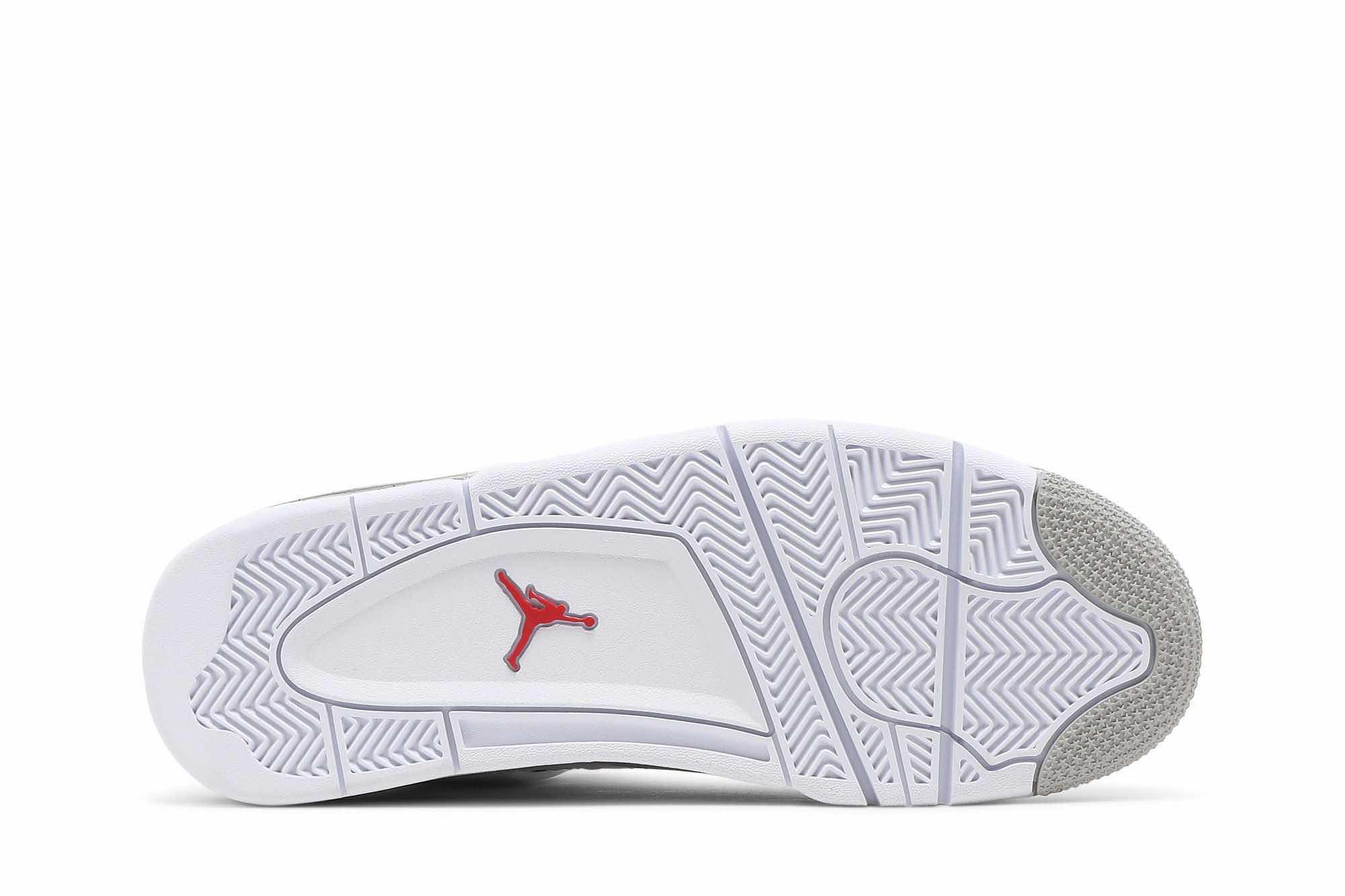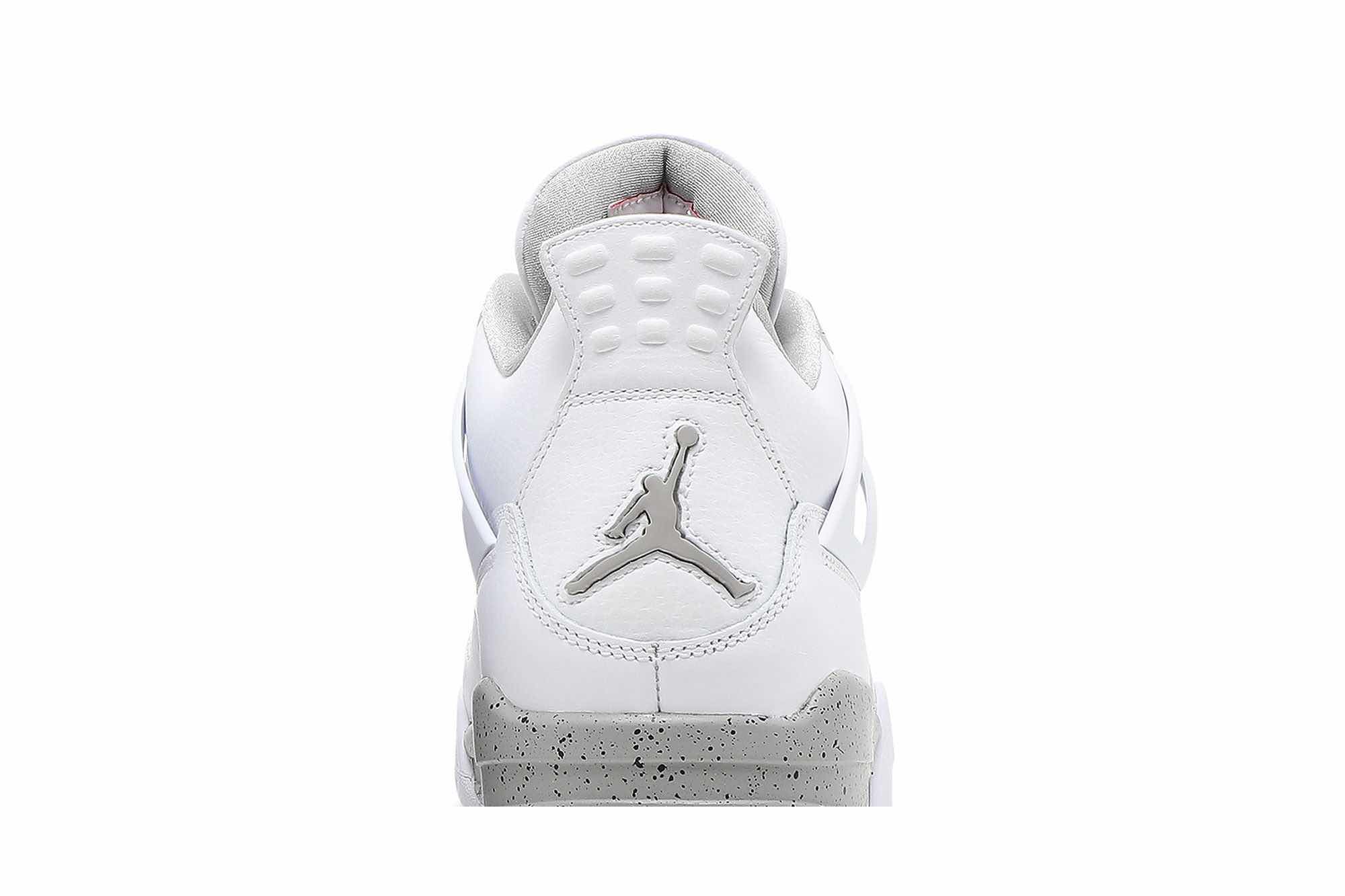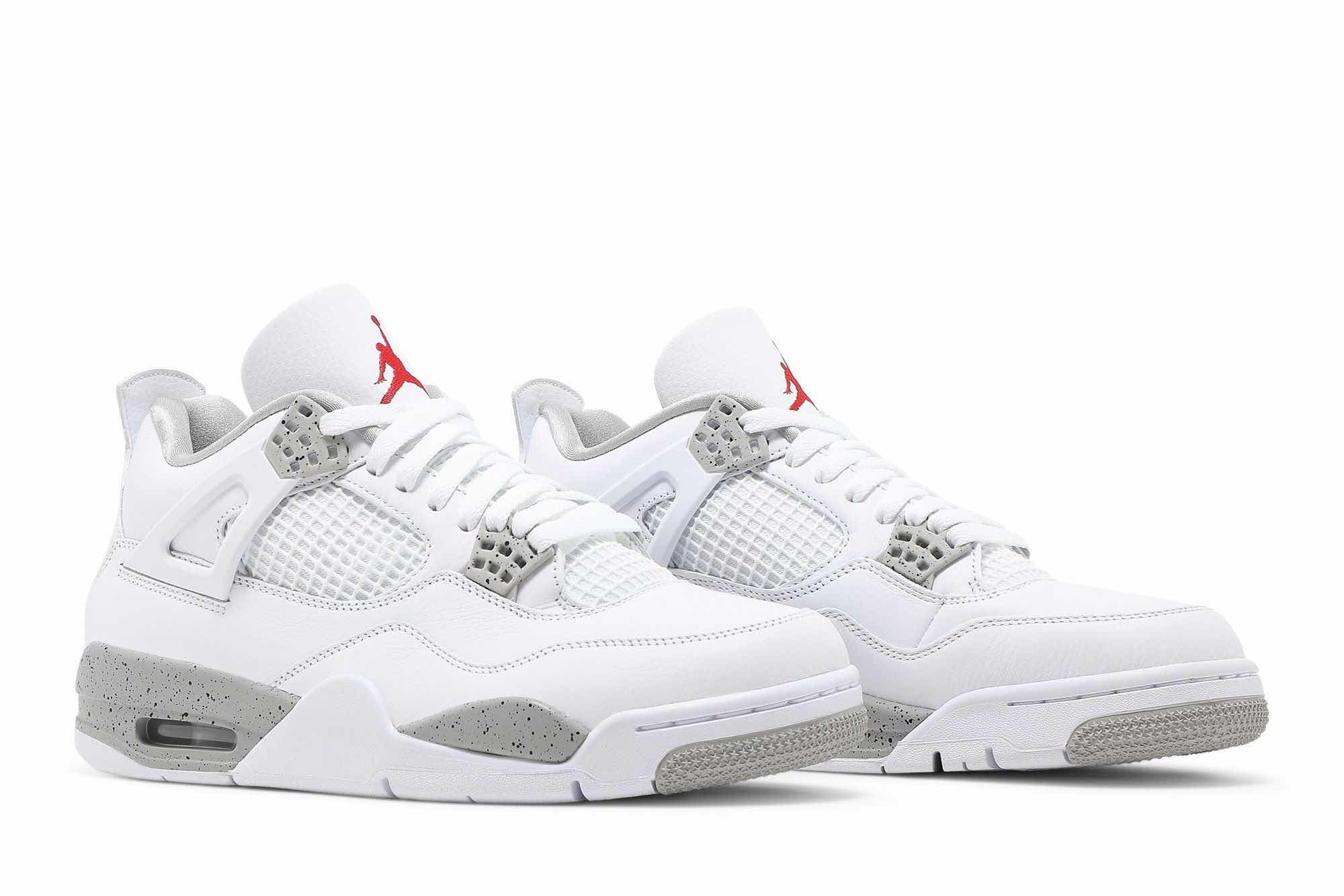 This Air Jordan 4 features an all-White tumbled leather upper detailed with speckled Cement Grey on the plastic eyelets and midsole. Moreover, branding comes in the form of Jumpman logos at the tongue and outsole atop a White rubber sole completes the design. SKU: CT8527-100 Release Date: Jul 3,2021 Color: White/Tech Grey/Black/Fire Red