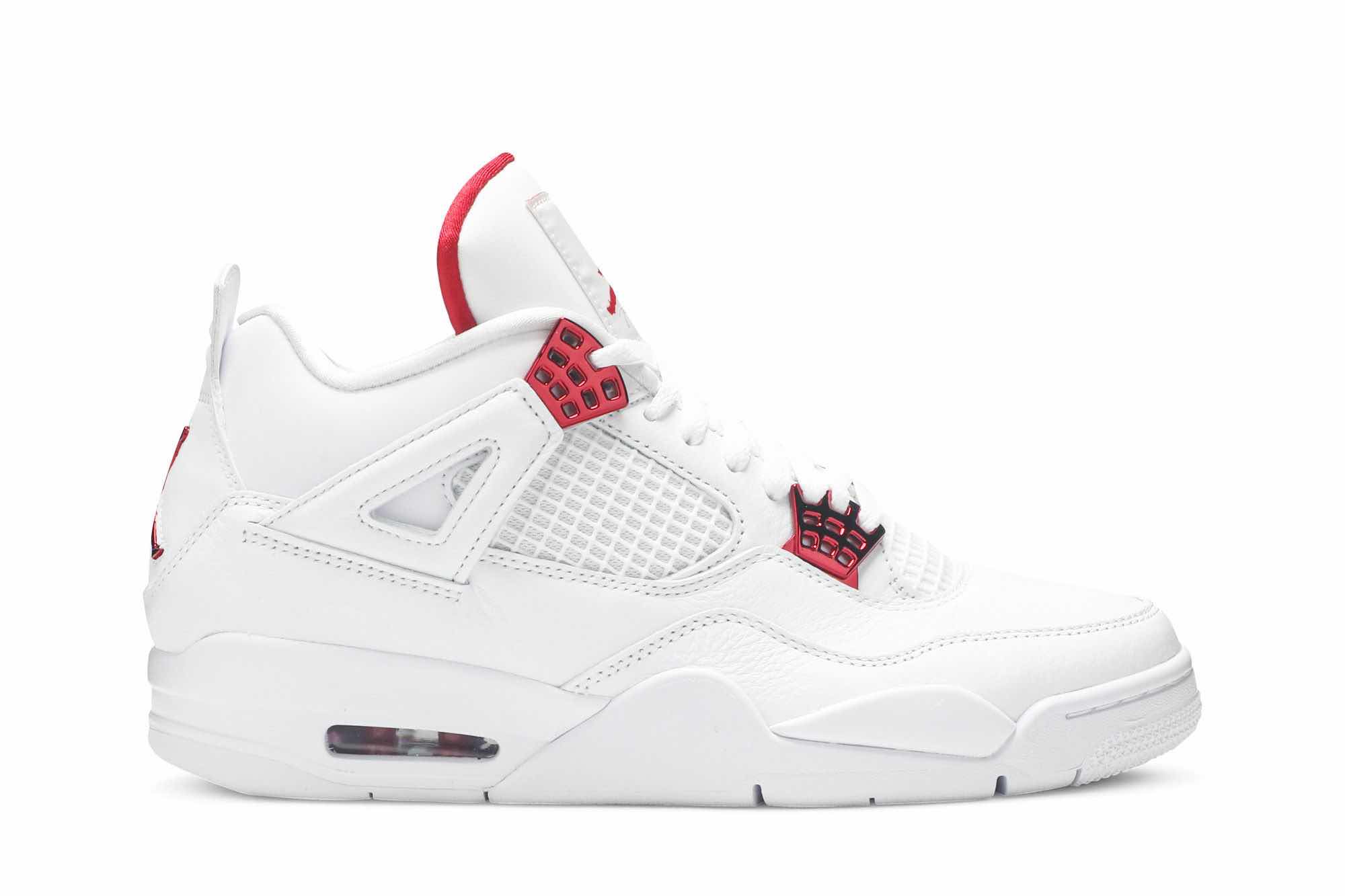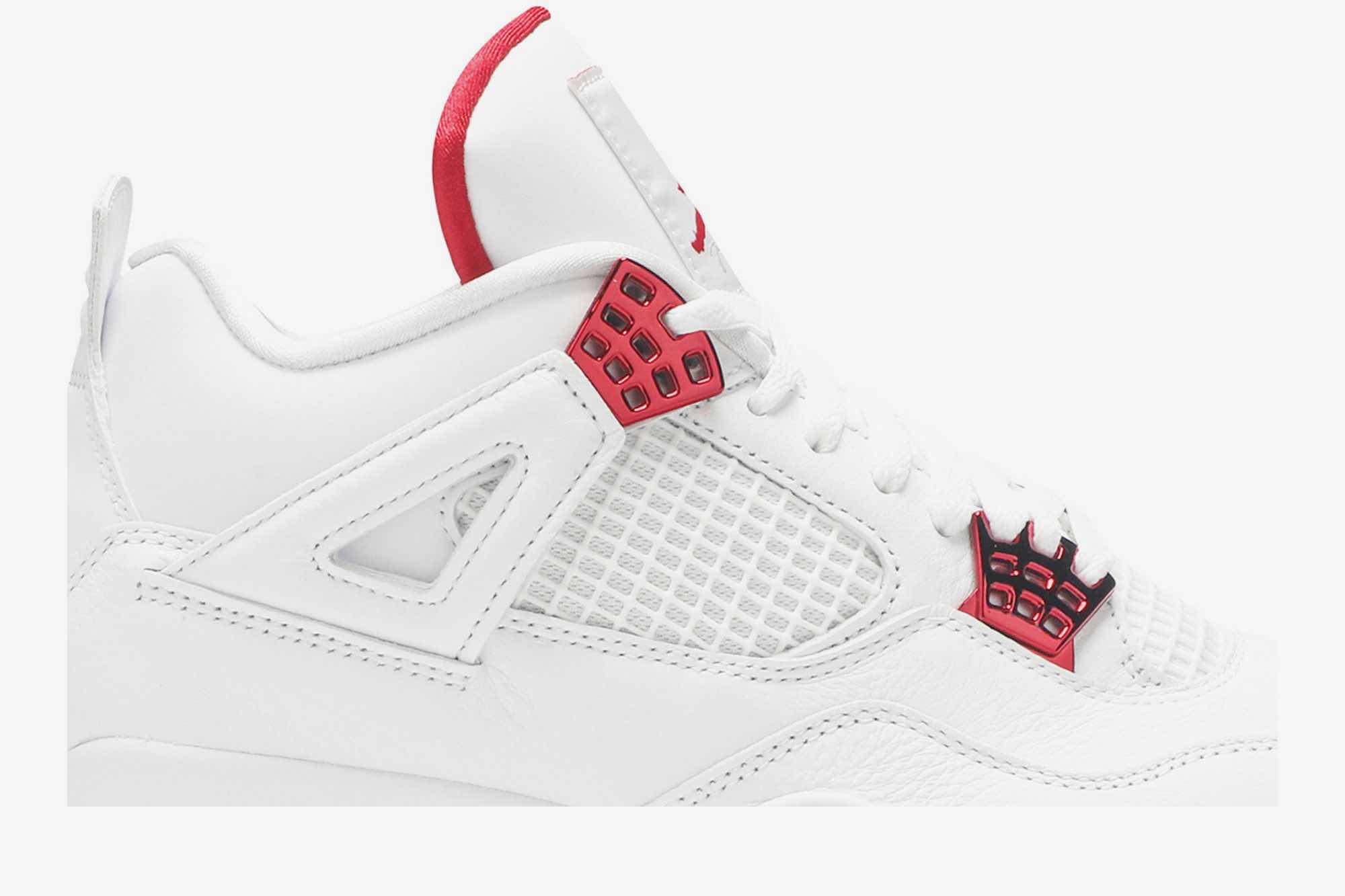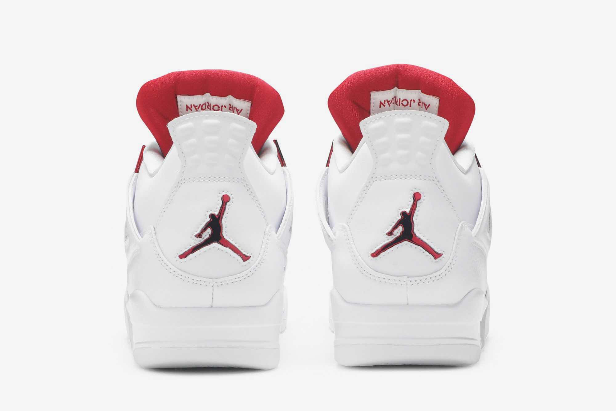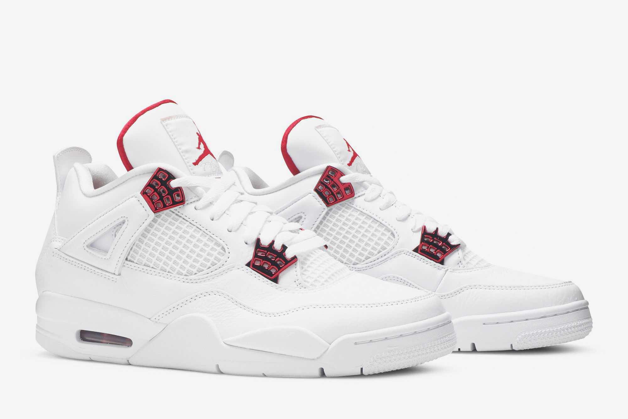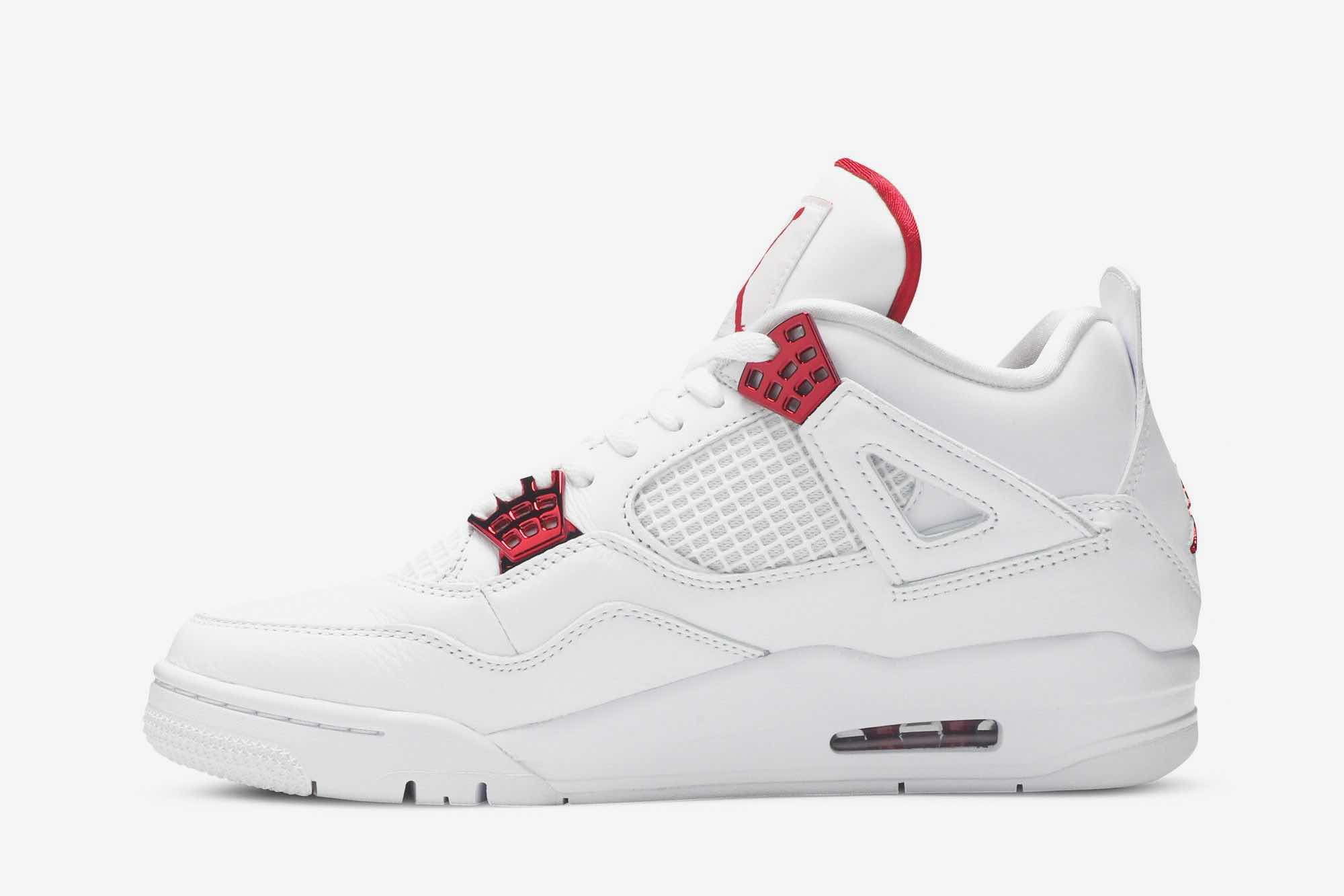 If you’re looking for something simplistic yet timeless, look no further as the Nike Air Jordan 4 Retro Metallic Pack has got you covered. Dressed in all white, the upper is constructed with leather and grid mesh. Underneath is a white rubber sole. Touches of University Red grace the eyelets, heel, tongue and sole.