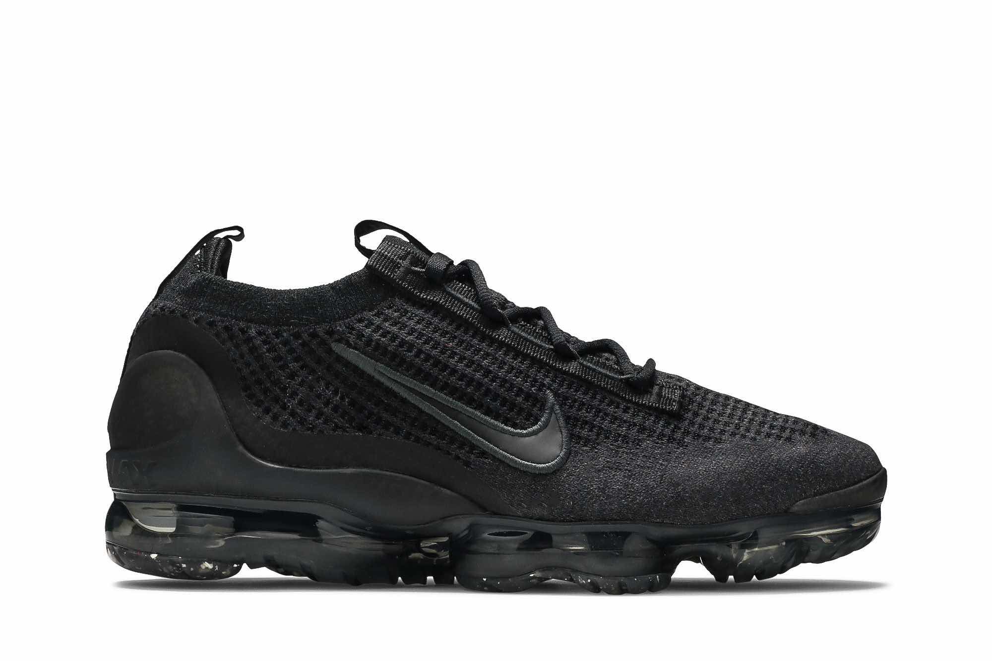 The Nike Air VaporMax 2021 Flyknit ‘Triple Black’ is a comfortable and sustainable lifestyle runner that’s perfect for any outfit. The black Flyknit upper is made of post-industrial recycled yarn and is supported by a recycled TPU heel clip. Dual pull tabs and an elastic sock-like collar make it easy to get on and off, while the low-profile Air-sole unit provides cushioning and support. The rubber outsole is made in part with Nike Grind material, making it durable and long-lasting.