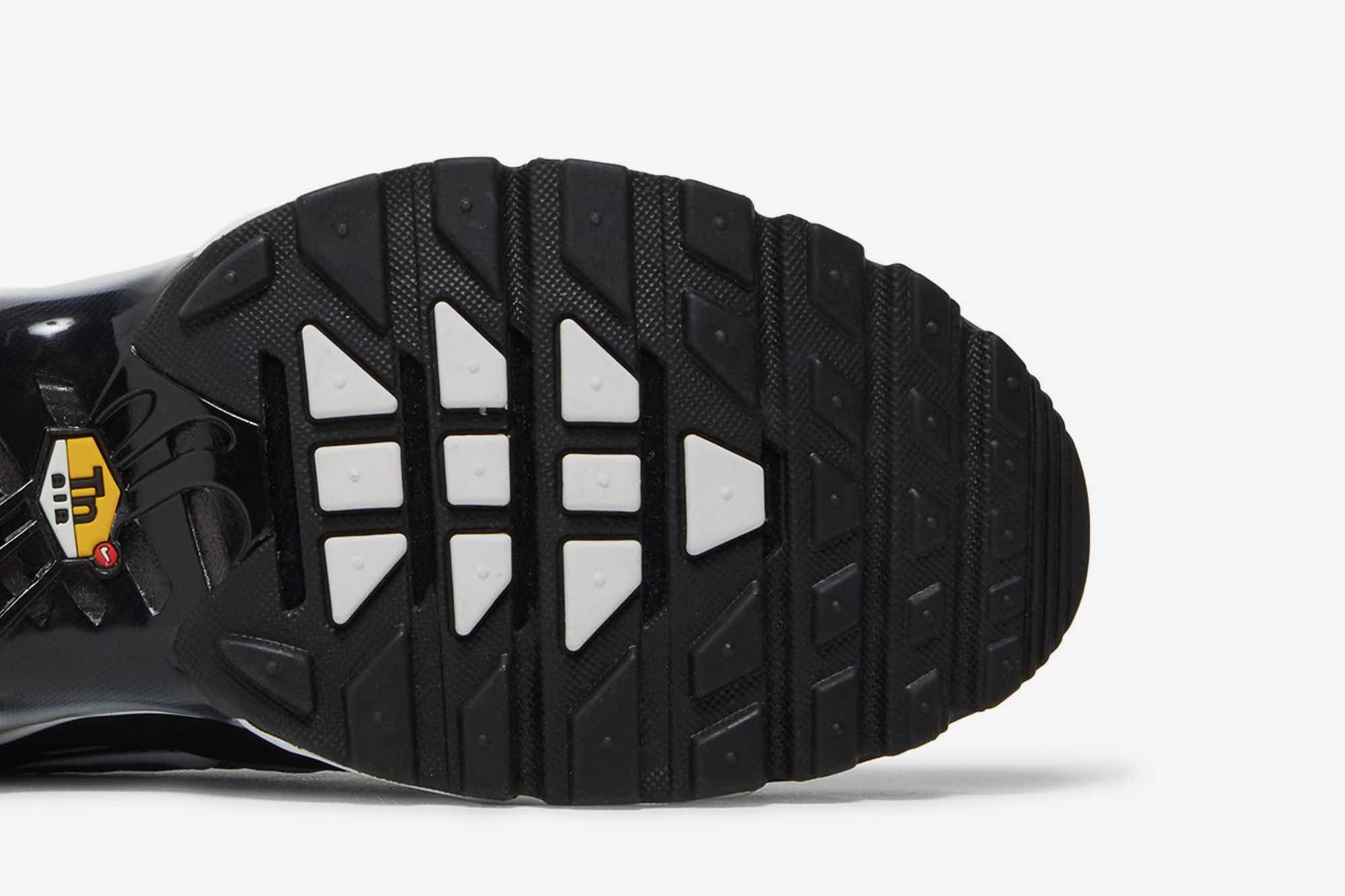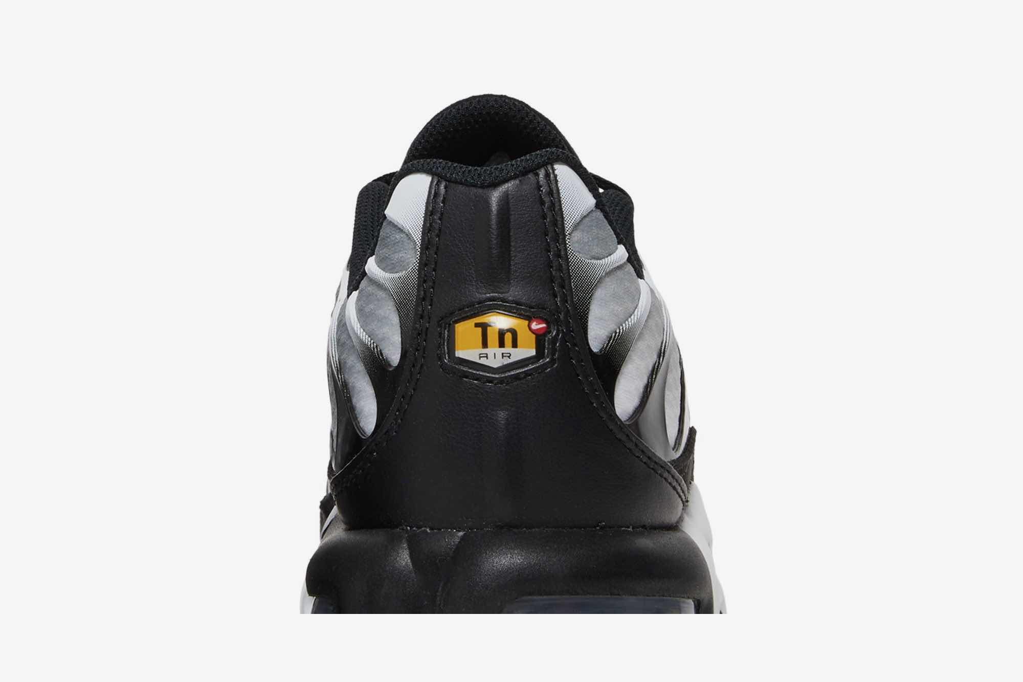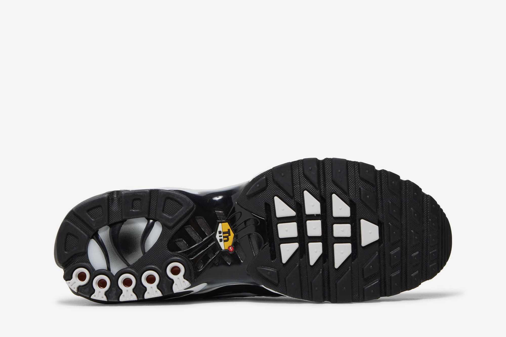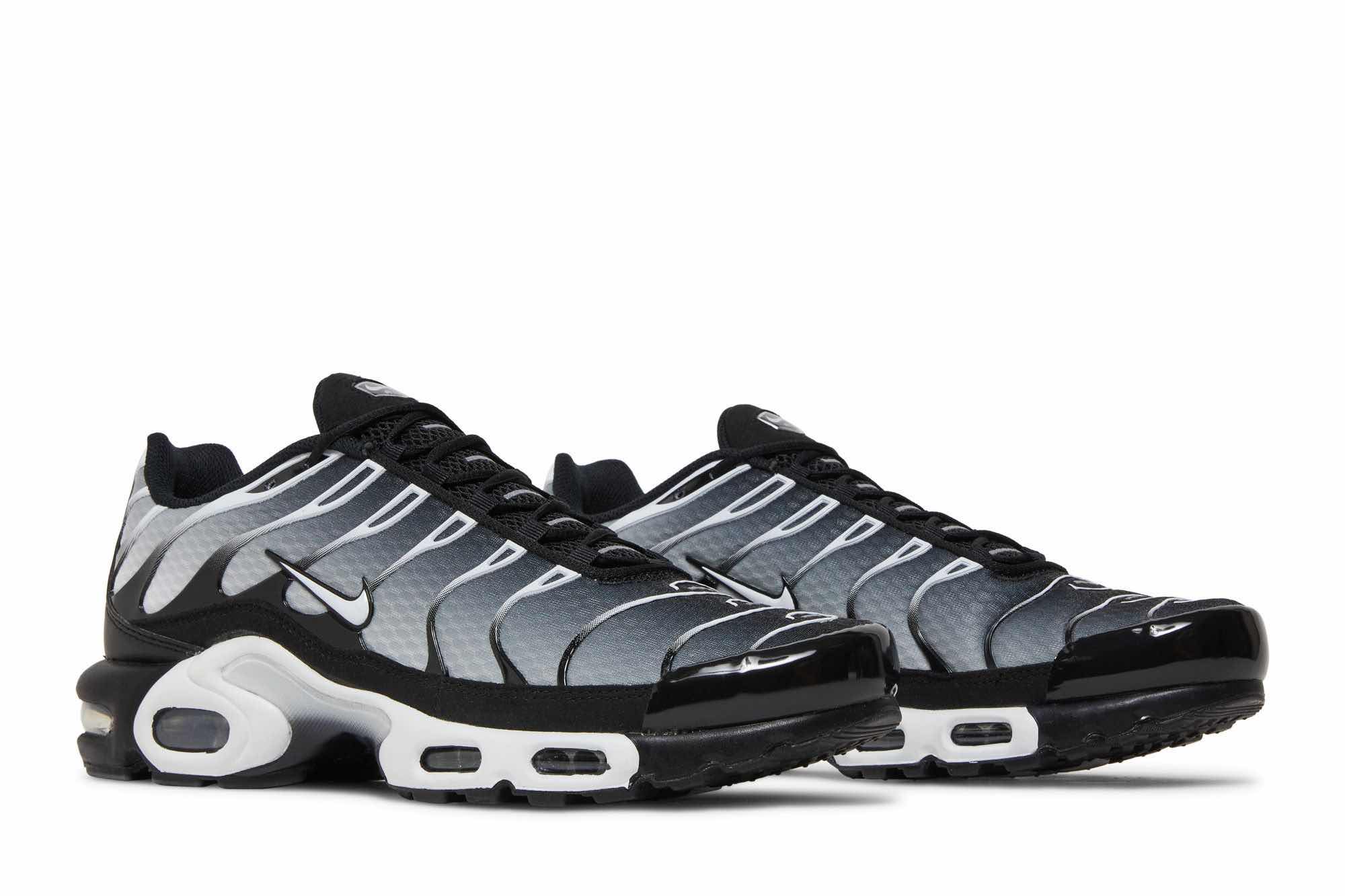 The Nike Air Max Plus Black Silver White boasts a sleek black, metallic silver, and white colorway. Featuring a honeycomb-shaped underlay and palm tree-inspired TPU overlays, this iconic sneaker offers Tuned Air (Tn) cushioning for ultimate comfort. With white Swooshes and Tn Air branding, this stylish design is a must-have for any sneaker enthusiast.