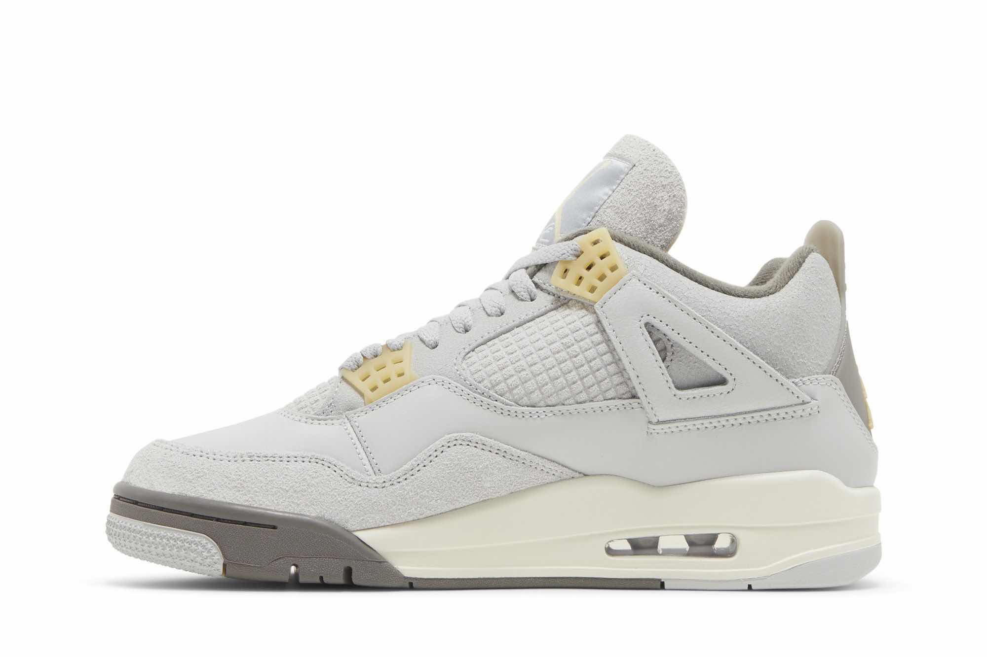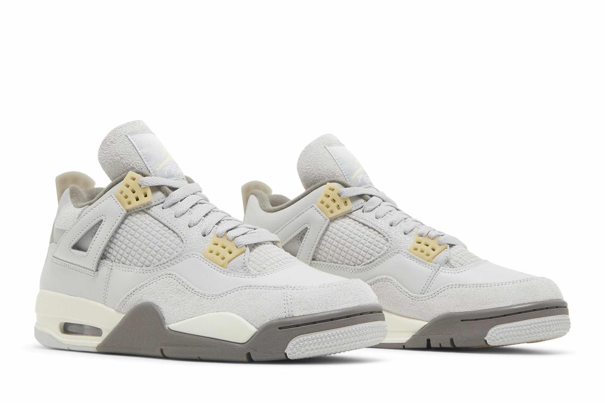 Break the boundaries with the Air Jordan 4 Retro SE ‘Craft Photon Dust’. This updated version of Tinker Hatfield’s 1989 design features an upper of light grey leather, a tonal suede collar and forefoot overlay, supplemented with cracked leather in the support wings. Gridded suede panels on the quarter panels replaces traditional plastic netting and casing, while Pale Vanilla accents finish off the look on the molded eyelet, tongue and heel Jumpman logo. The shoe also offers an off-white polyurethane midsole with a visible air sole unit for lightweight cushioning. Break the boundaries with the Air Jordan 4 Retro SE ‘Craft Photon Dust’. This updated version of Tinker Hatfield’s 1989 design features an upper of light grey leather, a tonal suede collar and forefoot overlay, supplemented with cracked leather in the support wings. Gridded suede panels on the quarter panels replaces traditional plastic netting and casing, while Pale Vanilla accents finish off the look on the molded eyelet, tongue and heel Jumpman logo. The shoe also offers an off-white polyurethane midsole with a visible air sole unit for lightweight cushioning. Elevate your style with this iconic legacy silhouette; perfect for any Air Jordan 4 Shoes fan.