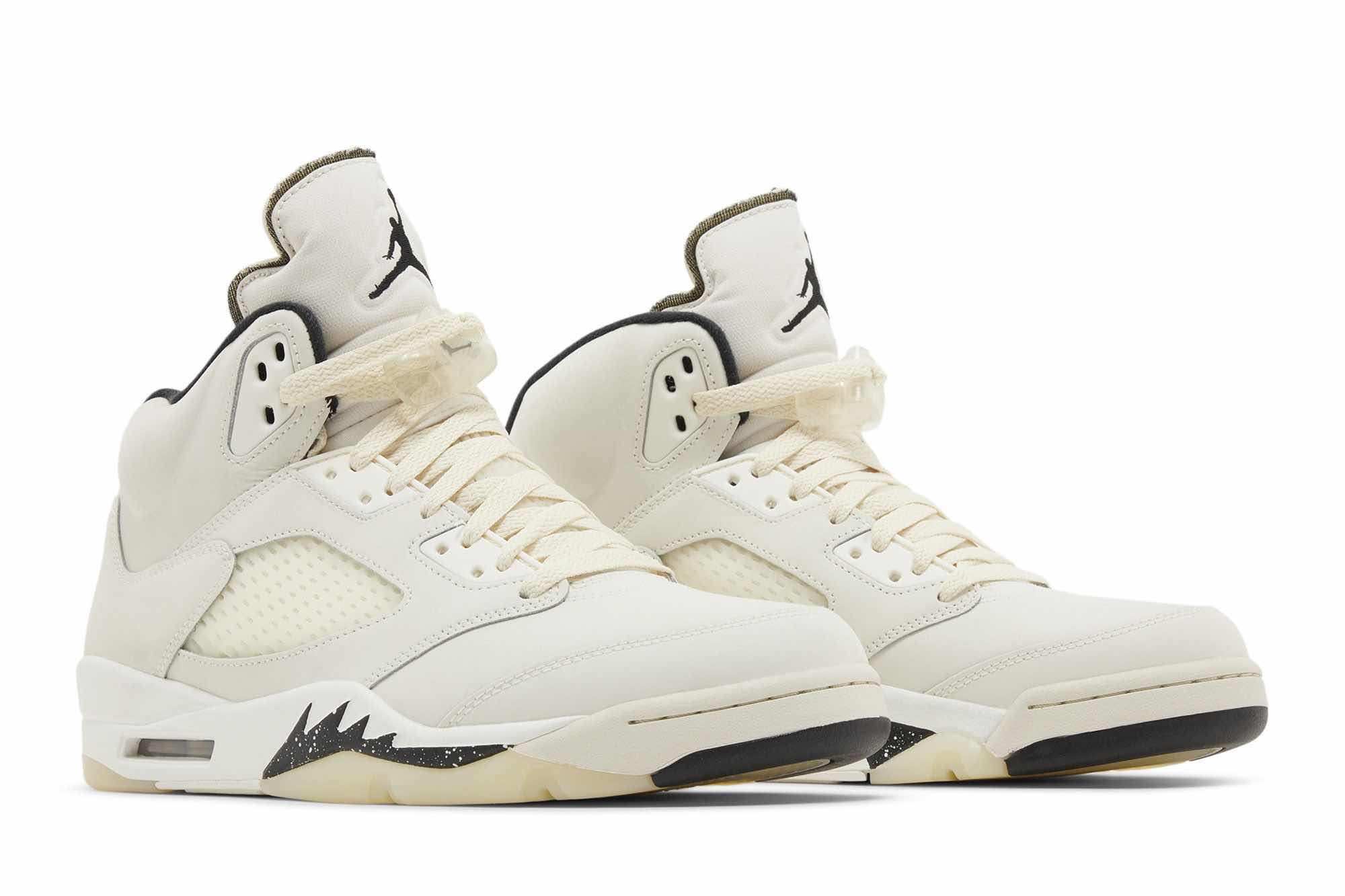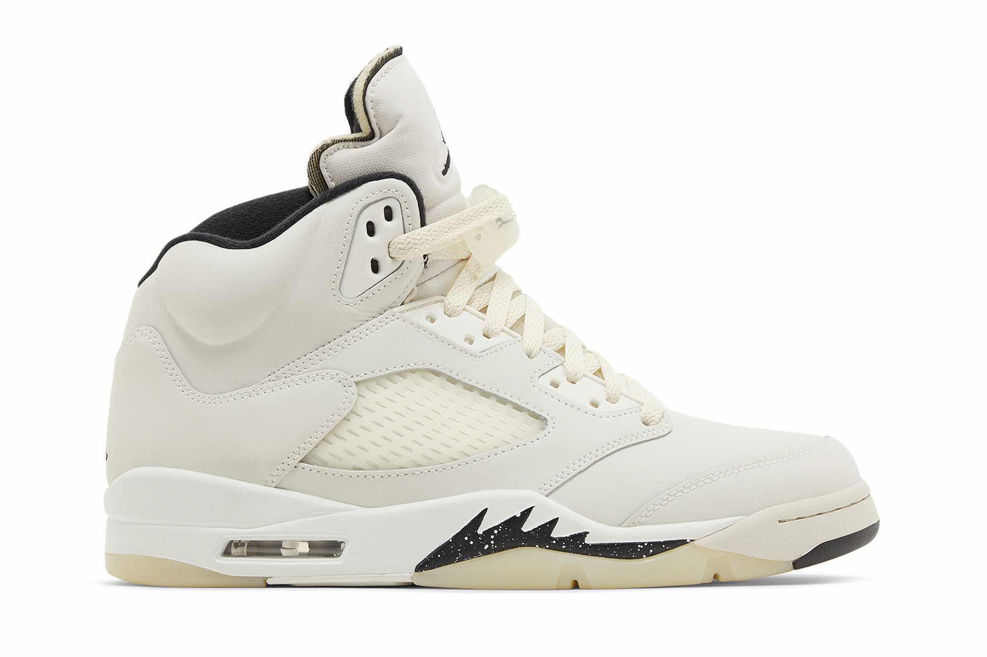 The Air Jordan 5 ‘Sail’, exudes elegance and style. Although official images are yet to surface, this sneaker boasts a sophisticated color palette, combining sail, black, light orewood brown, and coconut milk hues. The premium build features a sail base with coconut milk accents on the translucent netting found on the panels and tongues, as well as the outsole. Black and light orewood brown details grace the Jumpman logo, inner liner, and midsole.