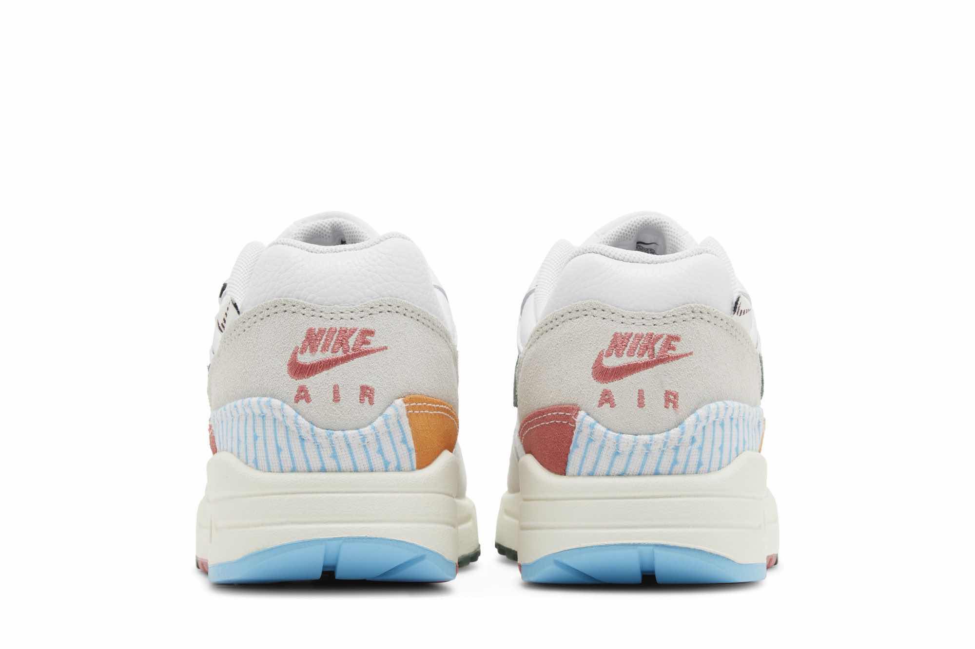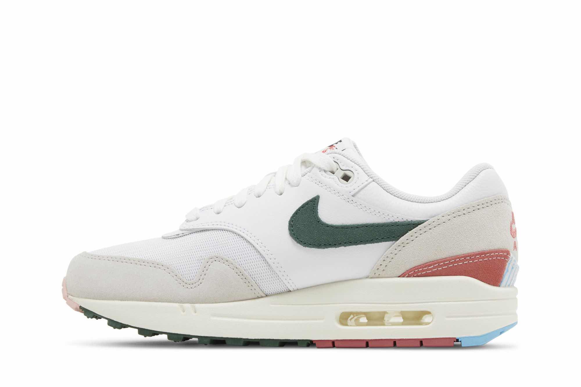 The Nike Women’s Air Max 1 ‘All Petals United’ spotlights florid details that pay homage to the Chinese women’s national football team, nicknamed the ‘Steel Roses.’ The retro runner carries a white mesh upper with tonal leather overlays and a green suede Swoosh. A multicolor mini-Swoosh decorates the patchwork mudguard, featuring an assemblage of off-white suede and striped textiles. A rose graphic appears on the Nike tongue tag, while custom insoles display the tagline ‘All Petals United.’ Lightweight cushioning is provided by an off-white polyurethane midsole, fitted with an Air-sole heel unit and supported by a multicolor rubber outsole.
