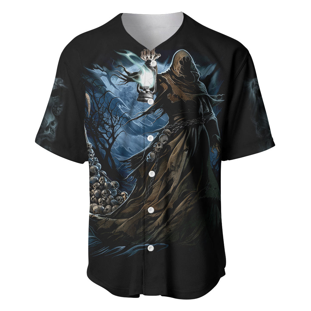 Grim Reaper Baseball Jersey The Ferryman Of The Underworld with Charon Skull Black
