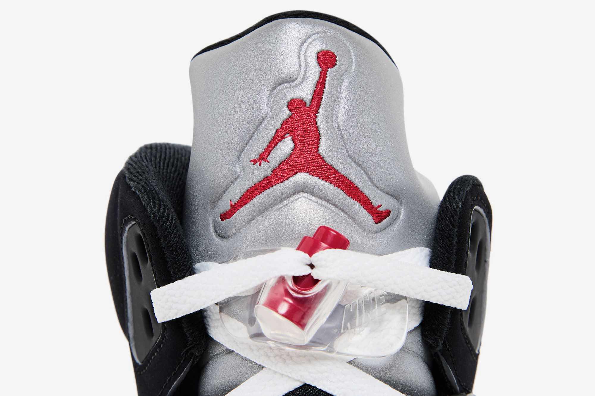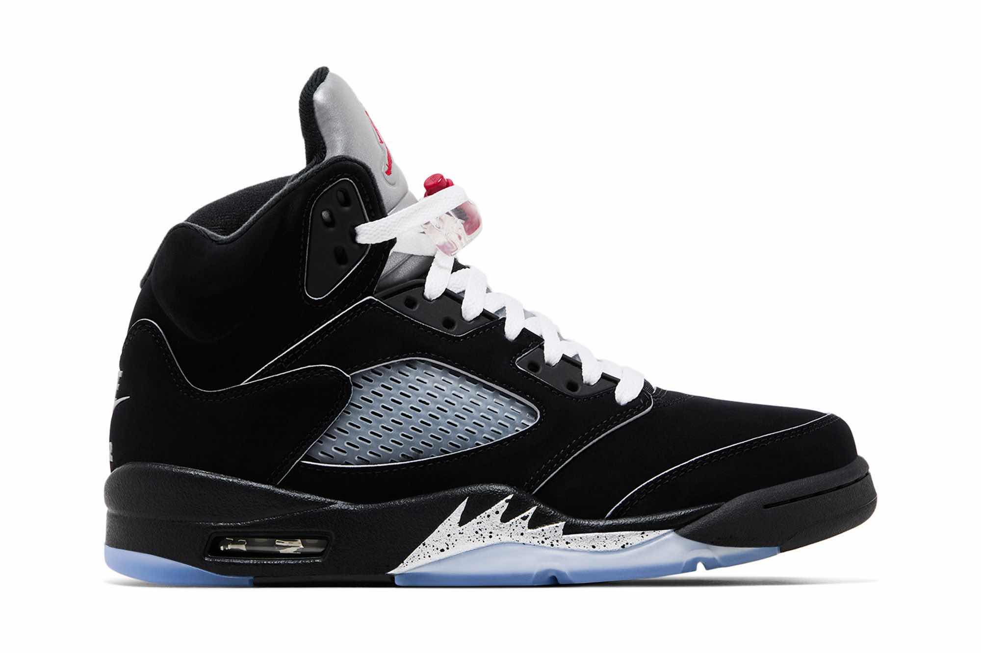 Reimagined for 2025, the Air Jordan 5 “Black Metallic” stays true to its 1990 roots. A sleek black nubuck upper, metallic silver accents, and Fire Red pops deliver a timeless yet updated classic. Modern touches enhance the iconic silhouette, making this a must-have for collectors and enthusiasts alike.