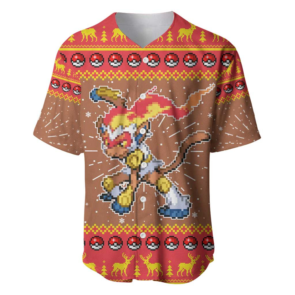 Infernape Pokemon Baseball Jersey Anime Pixel Christma Pattern
